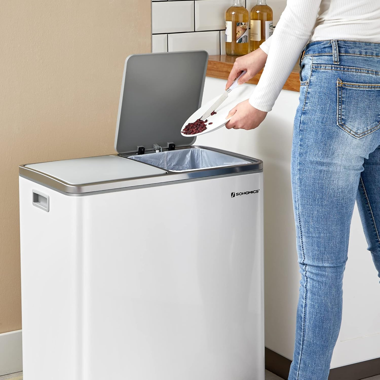 SONGMICS Cos gunoi dublu 59x32x65 cm, 2x30L, cu pedale si galeata detasabila, alb