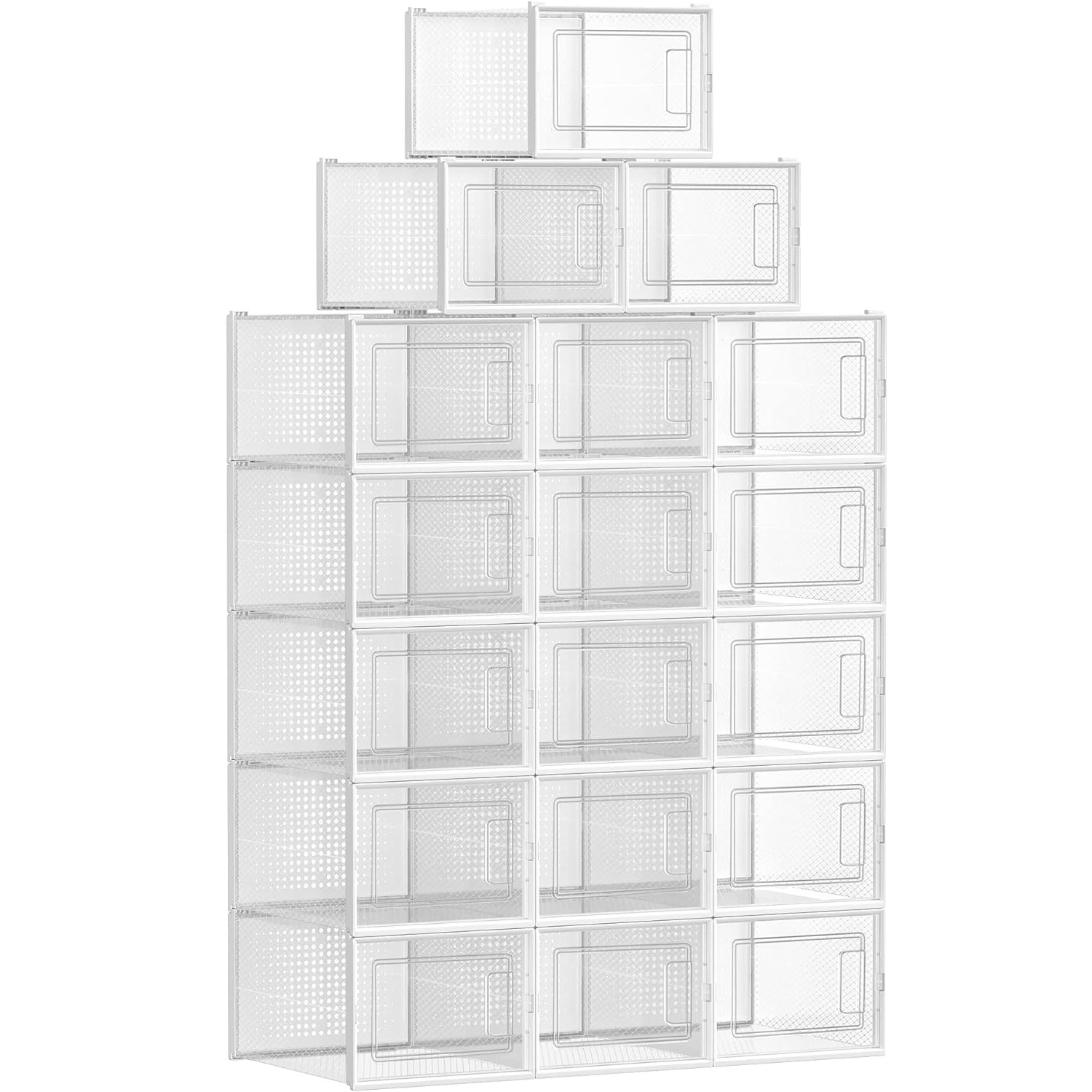 SONGMICS Cutii de pantofi, set de 18 organizatoare stivuibile, structura rezistenta ABS, 35x25x19cm, transparent