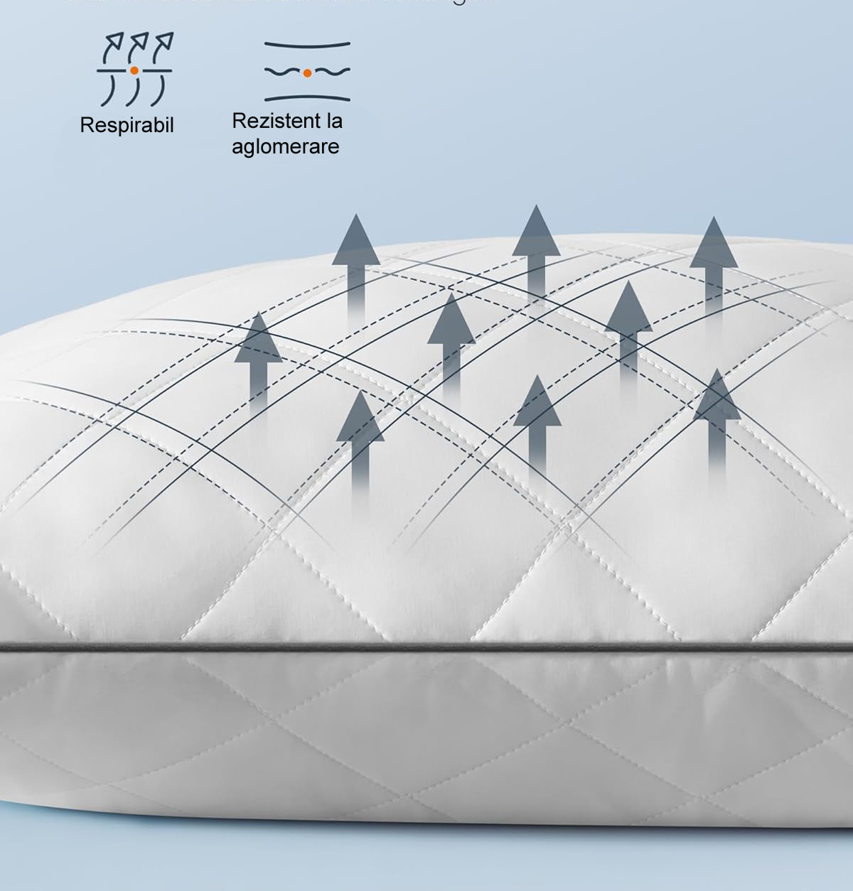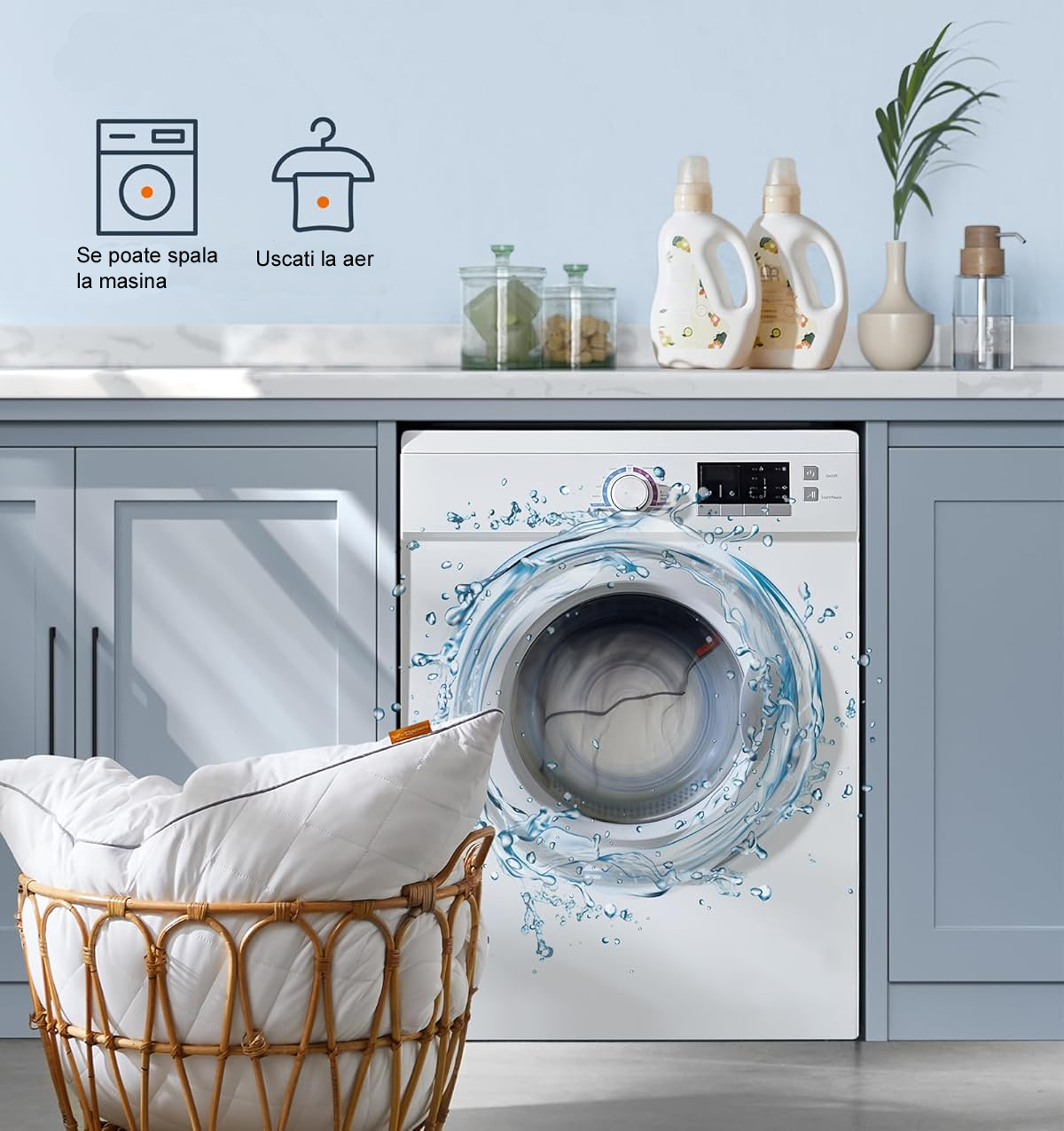 Culoare: Alb nor Material: Tesatura din amestec de poliamida, tesatura din poliester periat 110 g/m², fibra de poliester 3D, fibra de poliester 7D Dimensiuni: 80 x 80 cm (L x l) Note: Masurat intins, este posibila o abatere de dimensiune de 2-3 cm. Se spala la masina pana la 60° C si se usuca cu tambur. Scuturati dupa curatare pentru a-si reda forma. Ambalata in vid. Scuturati si lasati sa se aseze timp de 48 de ore pentru a mentine loftul complet. Spalarea sau uscarea cu tambur indeparteaza pliurile. Deschideti ambalajul cu grija pentru a nu deteriora materialul. Evitati zgarierea suprafetei cu obiecte dure sau ascutite. Despre acest articol Doua fete pentru confort pe tot parcursul anului: o parte din tesatura rece (Q-Max ≈ 0,43) impotriva caldurii de vara, cealalta parte din poliester cald protejeaza impotriva frigului de iarna. Cu perna cu doua fete, va puteti bucura de un somn bun pe tot parcursul anului. Scufundati-va in finete: Bine umpluta cu fibre de poliester de inalta calitate de 1200 g, aceasta perna va acopera in cea mai mare moliciune. Este inodora si flexibila si va permite sa alunecati usor in tara viselor in fiecare noapte. Dormiti mai bine: Invelisul cu un strat rezistent la transpiratie este respirabila si ramane uscata, astfel incat sa puteti dormi linistit si sa incepeti ziua plin de energie. Acest design previne, de asemenea, aglomerarea pentru o durata lunga de viata. Eleganta de lunga durata: Perna noastra cu cusaturi diamantate si margini contrastante, intarite, combina eleganta cu durabilitatea. Ingrijire usoara: Aceasta perna de pat este lavabila la masina si poate fi uscata pana la 60°C. Astfel, ramane proaspata si curata, isi pastreaza moliciunea si pufosenia si asigura o ingrijire usoara pentru mai putin stres in viata de zi cu zi.