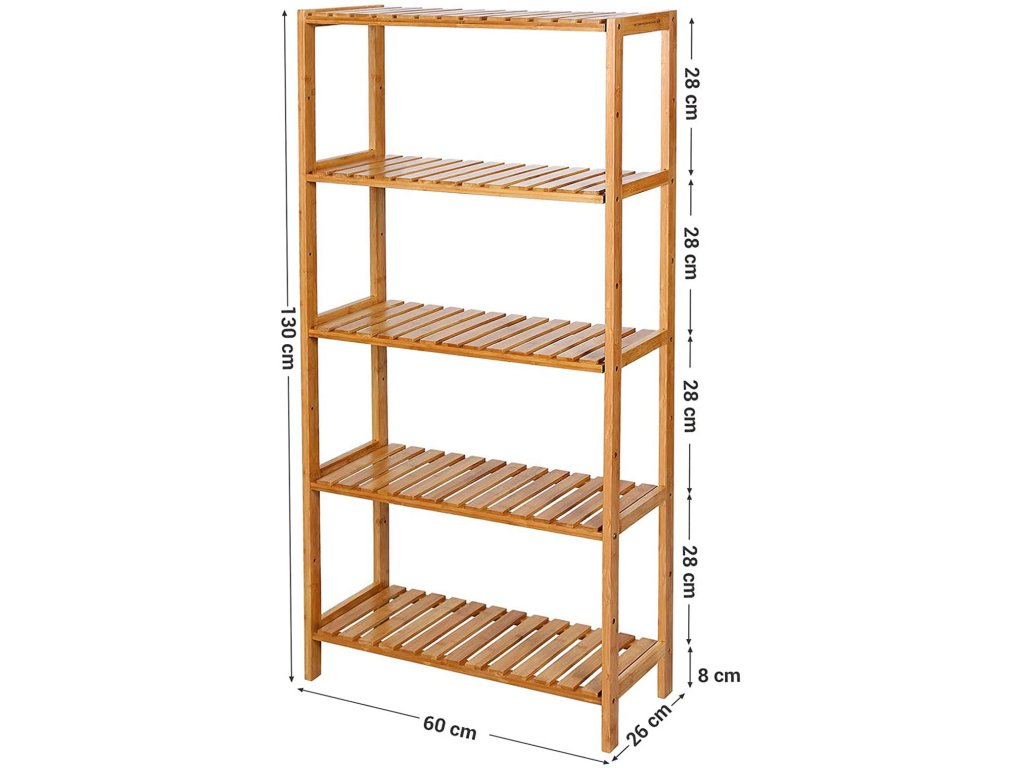 Numar de rafturi: 5 Caracteristica speciala: Reglabil Dimensiunile produsului: 26D x 130W x 60H centimetri Un suport din bambus de care sa te indragostesti: Datorita...