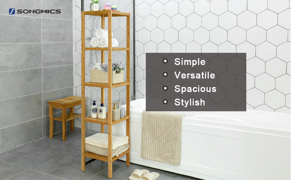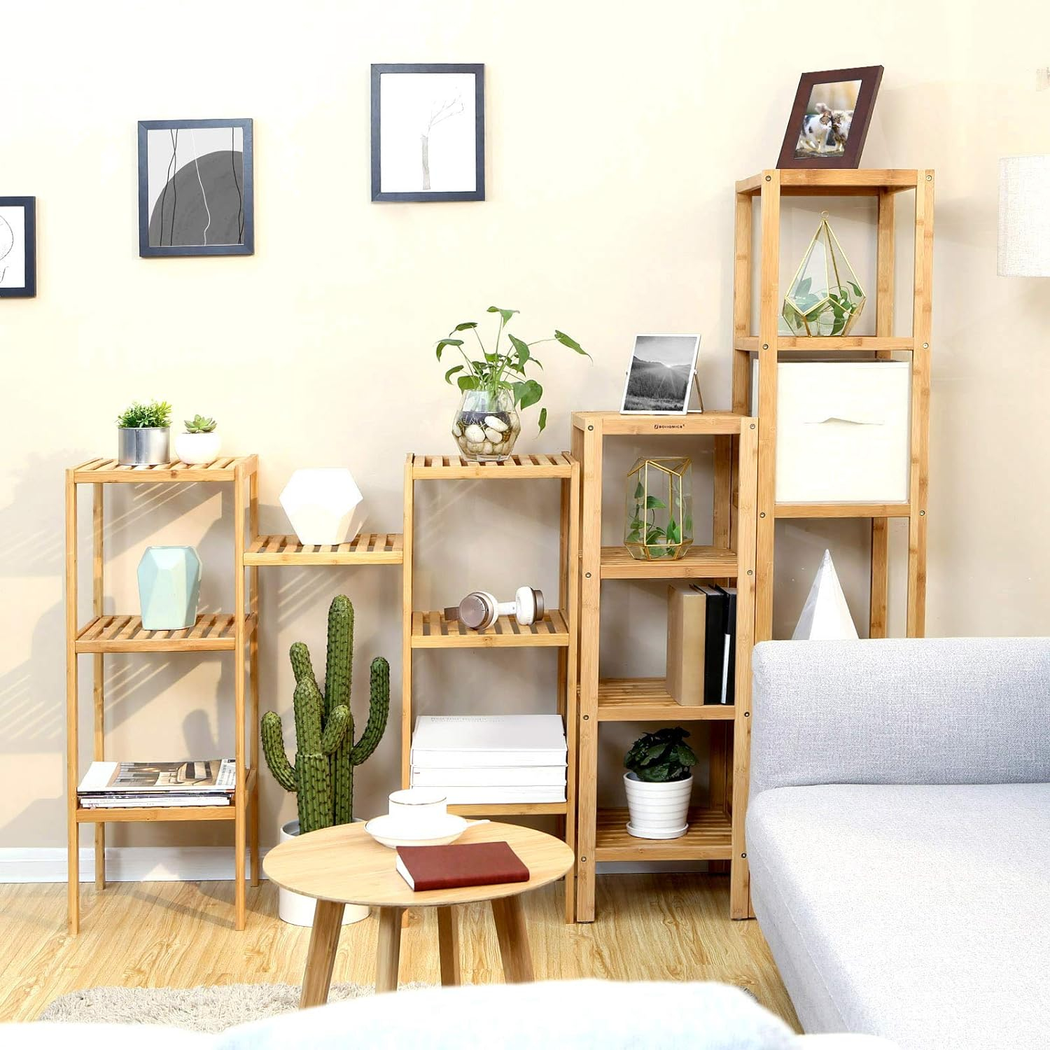 SONGMICS Raft de depozitare din bambus, 5 polite, pentru bucatarie sau baie, 146x33x33cm, maro natural