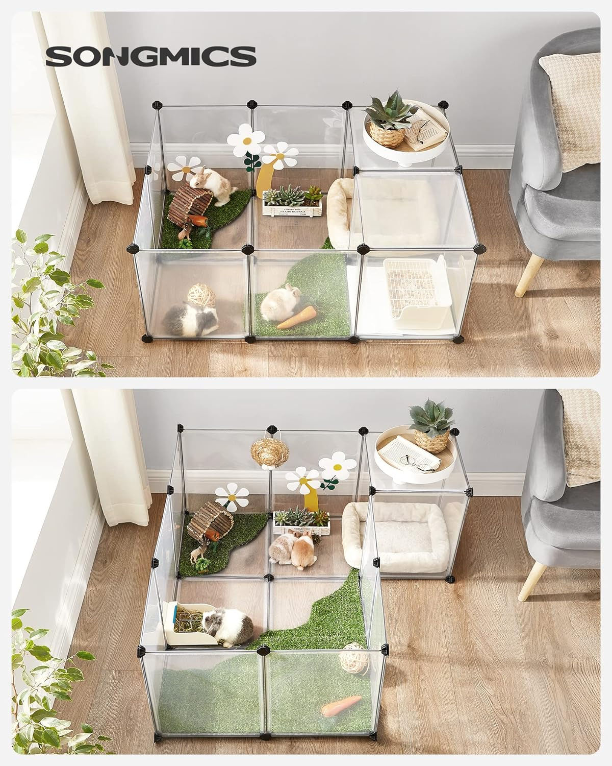 SONGMICS Tarc pentru animale mici rozatoare, din plastic, modulara DIY, 143 x 73 x 46 cm, alb