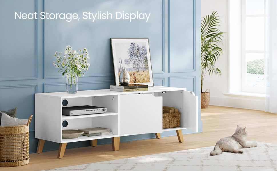 VASAGLE Comoda pentru TV de pana la 65 inch, cu 2 usi si raft reglabil, 40x140x50 cm, alb