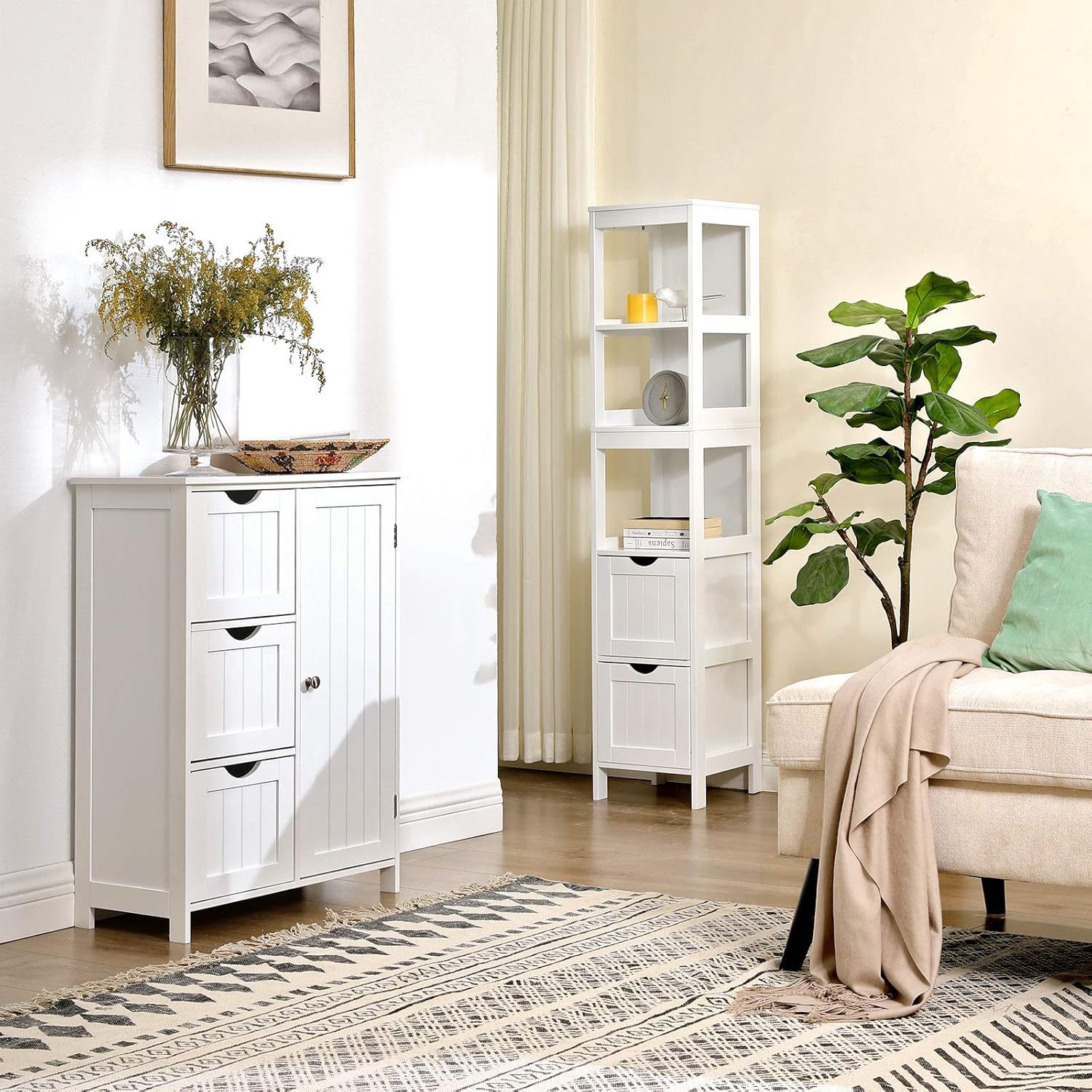 VASAGLE Dulap de baie tip coloana, din MDF, cu 2 sertare si 3 rafturi, 30x30x142 cm, alb