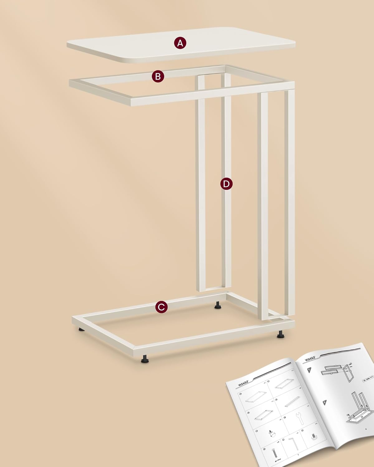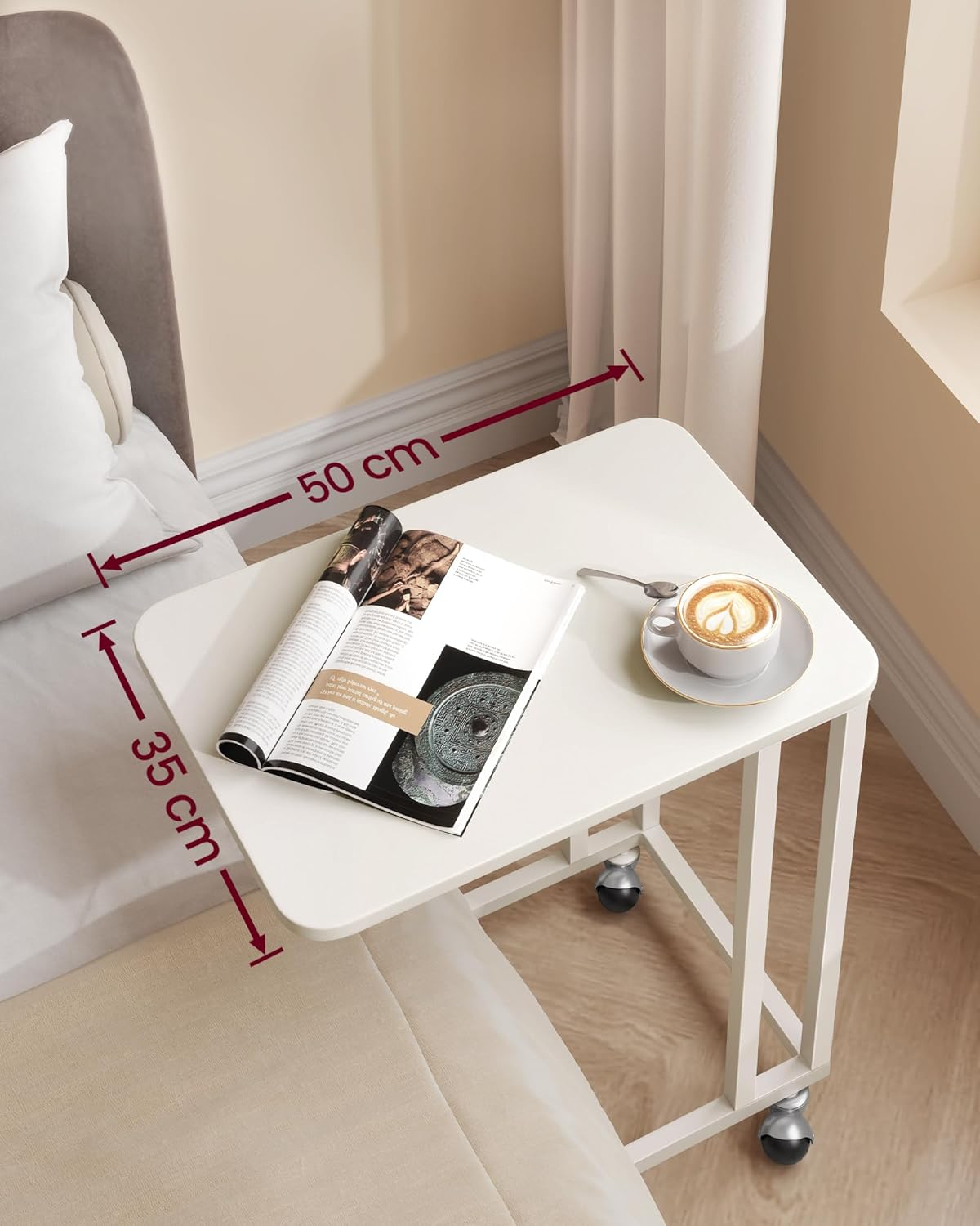 VASAGLE Masuta de cafea, cu cadru de otel si roti, stil industrial, 35x50x60 cm, crem