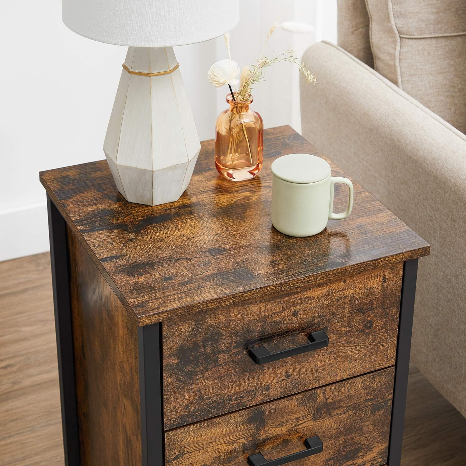 VASAGLE Noptiera cu 3 sertare pentru dormitor, design industrial, 40x40x60cm, maro rustic