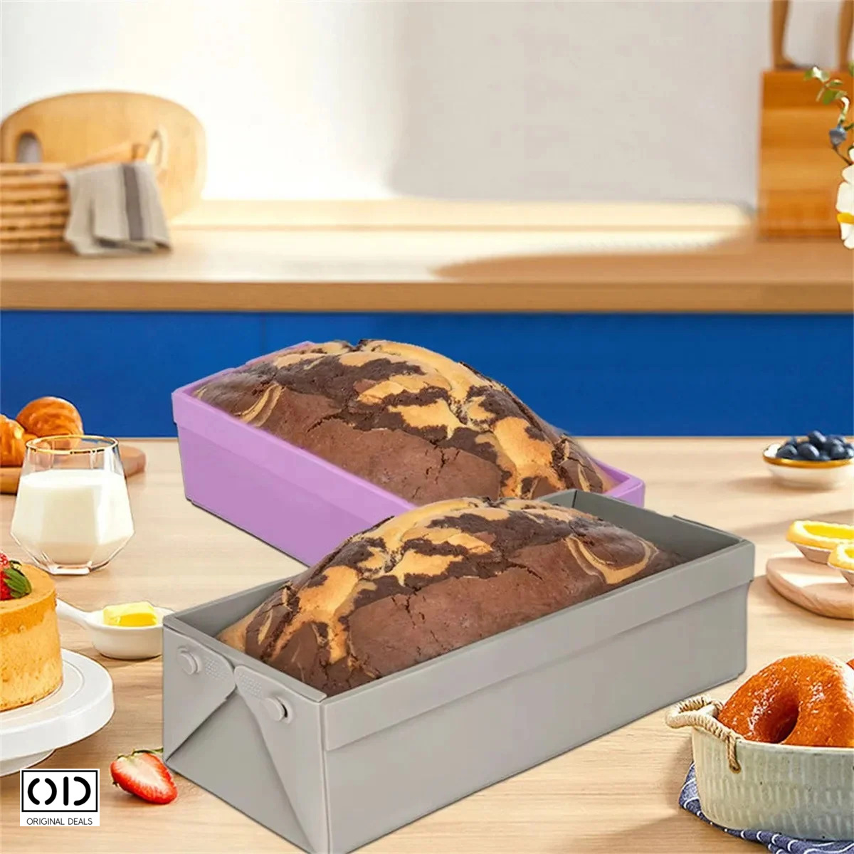 Tava din silicon cu pereti detasabili, antiaderenta si rezistenta la temperaturi inalte, 24.5 × 11 × 6.5 cm, ideala pentru deserturi precum torturi, briose sau painici. Material flexibil si usor de curatat. ORIGINAL DEALS.