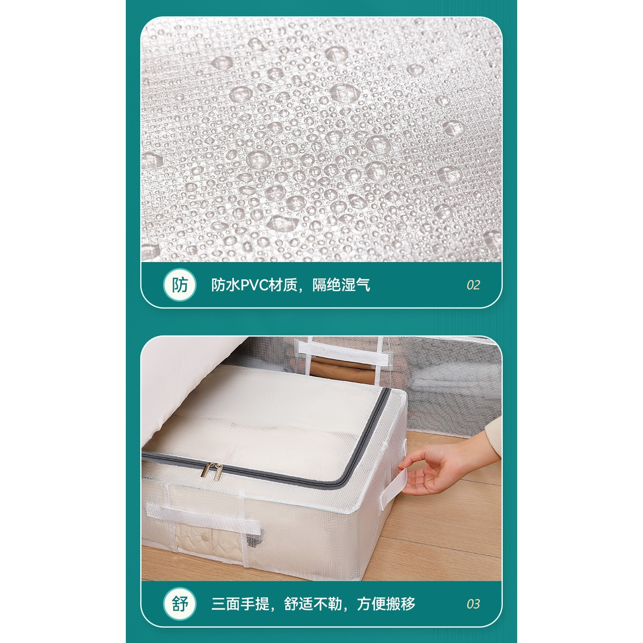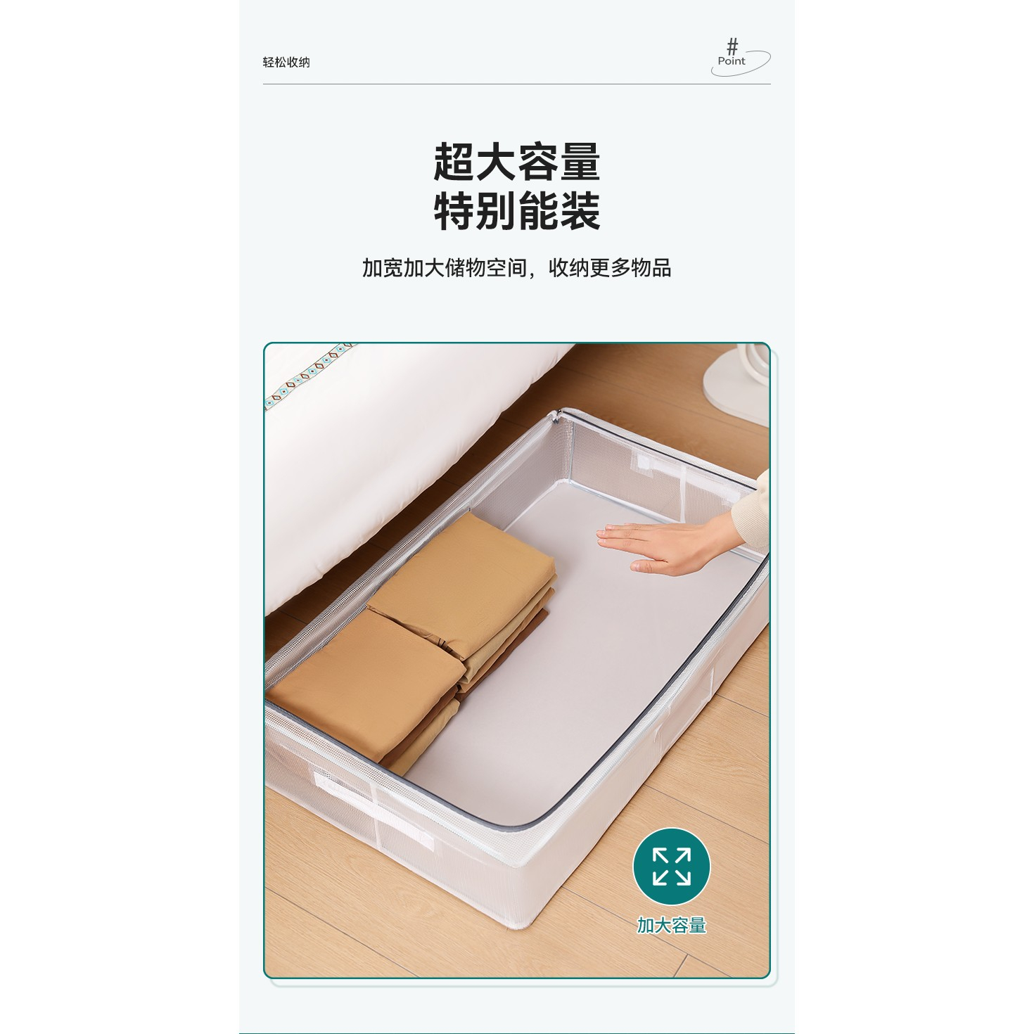 • Ideală pentru a fi depozitată sub pat, sub dulap sau canapea, economisind spațiu în locuință.