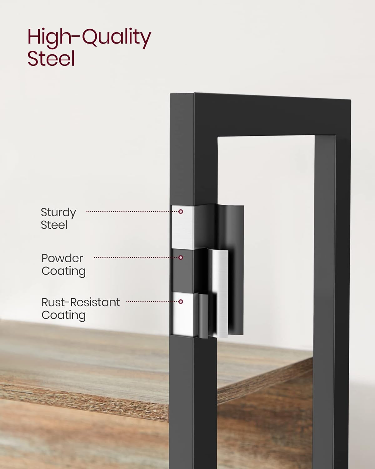 Specificatii: Culoare: stejar cu boabe albastre, negru Material: Placi MDF , otel Dimensiune produs: 24 x 158 x 166 cm (L x l x H) Greutate produs: 26,5 kg Capacitatea maxima de incarcare statica a fiecarui raft: 10 kg Capacitate maxima de incarcare statica totala: 140 kg Continutul pachetului: 1 x Biblioteca 1 x Geanta pentru accesorii 1 x Kit anti-rasturnare 1 x Instructiuni Despre acest articol Aceasta unitate de rafturi, cu dimensiunea de 24 x 158 x 166 cm, cu 14 rafturi amestecate, ofera mult spatiu pentru a afisa in mod elegant ciucuri, fotografii, suveniruri de sarbatori si multe altele.Otelul robust si placile de particule rezistente formeaza o structura stabila, intarita in continuare de barele X de pe spate. Biblioteca poate sustine pana la 10 kg pe raft, pentru un total de 140 kg.Placile atasate pe rafturi asigura ca articolele dvs. nu se prabusesc. Picioarele reglabile mentin raftul la nivel, iar kitul anti-rasturnare previne rasturnarea raftului pentru un mediu mai sigur.Asezati acest raft cu carti in camera de zi pentru a afisa decoratiuni si alte decoruri, in birou pentru a organiza documentele, in dormitor pentru lucrurile personale sau doar in dulap pentru mai mult spatiu pentru a va organiza lucrurile.Cu piese etichetate, instructiuni clare, un ghid video intuitiv si instrumente de asamblare incluse, asamblarea acestui raft este simpla si usoara.