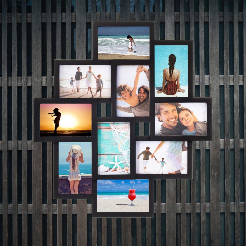 Rama foto de perete, colaj de 10 fotografii, 48x53cm, negru