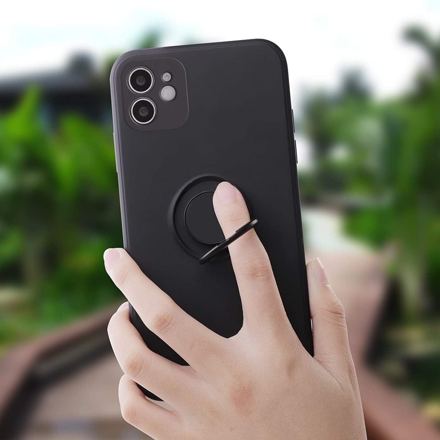 Husa protectie compatibila cu Apple iPhone 12 Mini Liquid Silicone Ring cu suport rotativ Negru