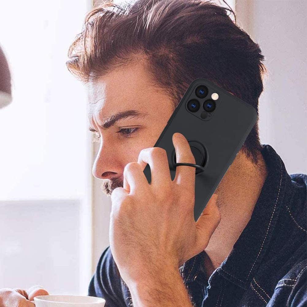 Husa protectie compatibila cu Apple iPhone 12 Pro Max Liquid Silicone Ring cu suport rotativ Negru