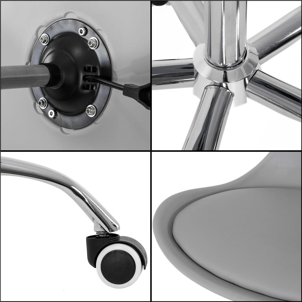 Specificatii tehnice Tip produs: Scaun birou pentru copii Culoare: Gri Dimensiuni totale: 90 h x 48,5 l x 49 a cm (max) / 80 h x 48,5 l x 49 a cm (min) Grosime sezut: 2 cm Inaltime sezut: 42–52 cm Grosime spatar: 0,5 cm Material sezut: Piele ecologica + spuma PU Material spatar/corp: Plastic dur Material baza: Metal cromat Material roti: Plastic dur Diametru baza: 58 cm Diametru roti: 4,5 cm Greutate maxima suportata: 120 kg Scurta descriere Scaunul de birou pentru copii imbina functionalitatea cu un design modern si atractiv. Spatarul cu decupaje decorative in forma de labe de pisica adauga un element jucaus. Stabil si confortabil, este ideal pentru studiu si activitati zilnice. Caracteristici principale Sezut tapitat cu piele ecologica si spuma PU Reglaj pe inaltime pentru adaptare la utilizator Rotire 360° pentru libertate de miscare Baza cromata cu cinci brate stabile Roti rezistente si usor de manevrat Spatar ergonomic pentru sustinere corecta Ideal pentru camera copiilor sau adolescentilor