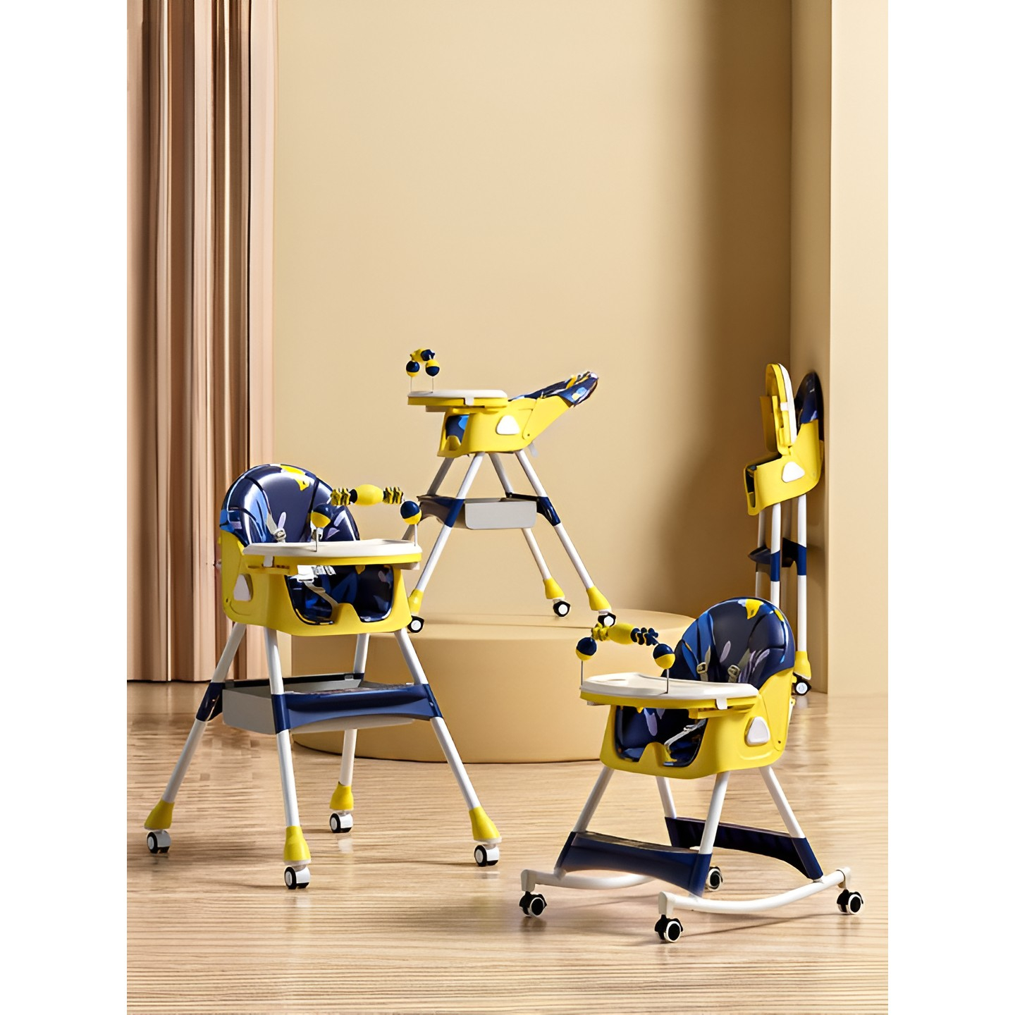 Scaun de Masa pentru Bebelusi si Copii, , 2 Tavite si Husa Detasabile, Multifuncțional, Stabil, Centura de Siguranta, Spatar Reglabil Moale, Balansoar, Cos de Depozitare, de la 6 Luni, Galben