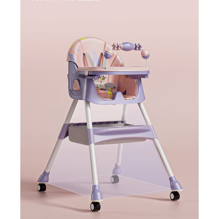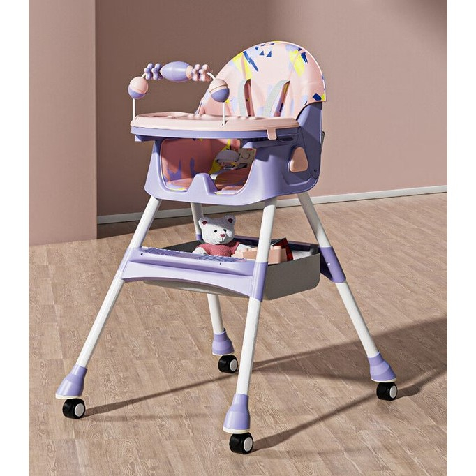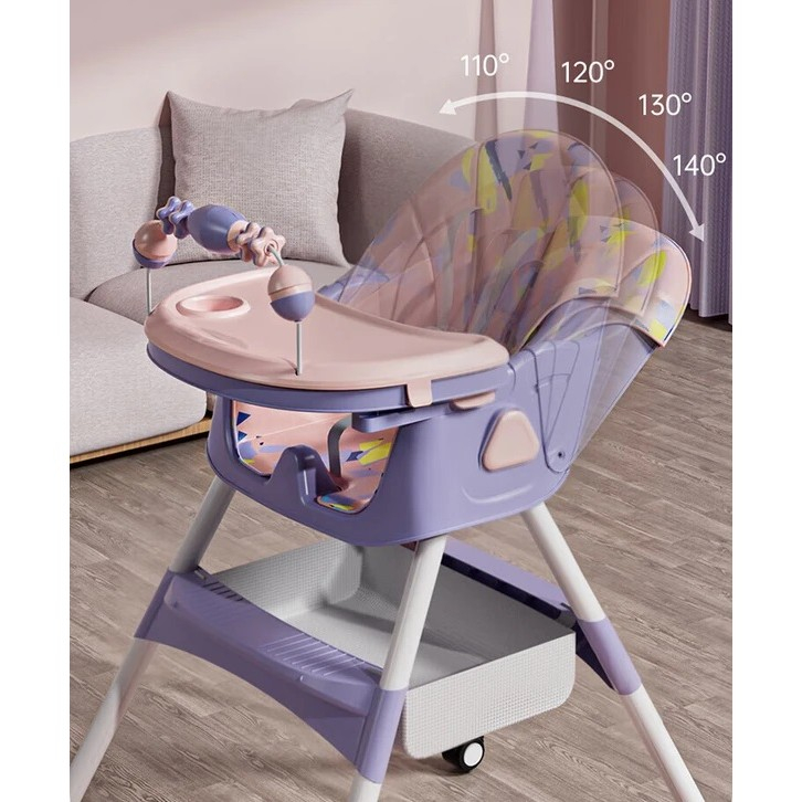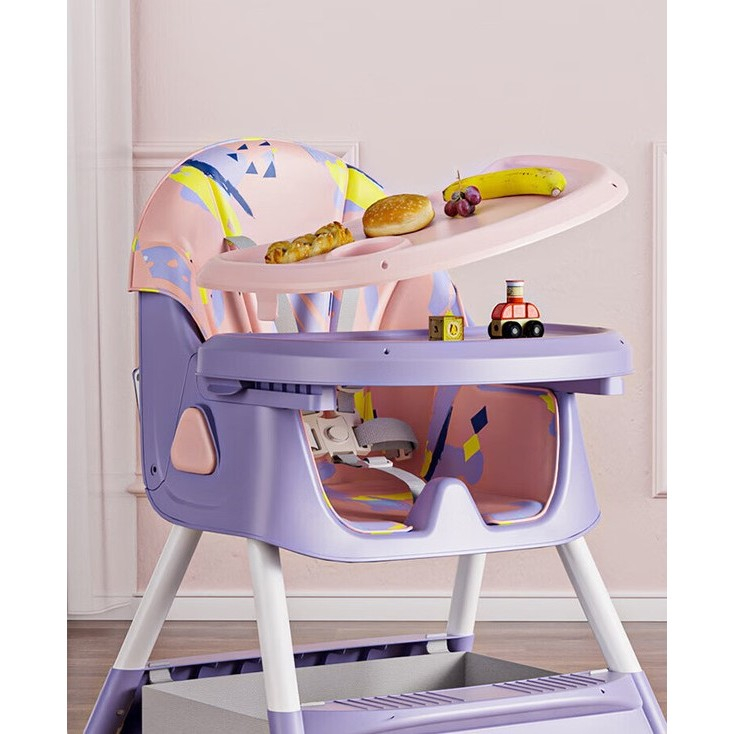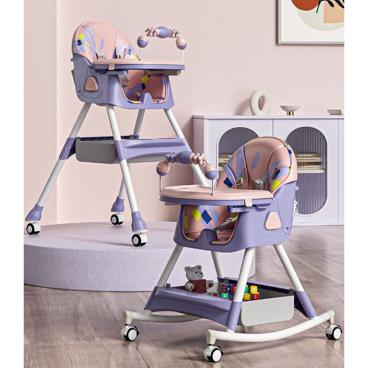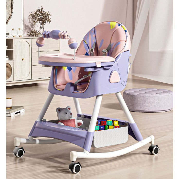Scaun de Masa pentru Bebelusi si Copii, , 2 Tavite si Husa Detasabile, Multifuncțional, Stabil, Centura de Siguranta, Spatar Reglabil Moale, Balansoar, Cos de Depozitare, de la 6 Luni, Mov