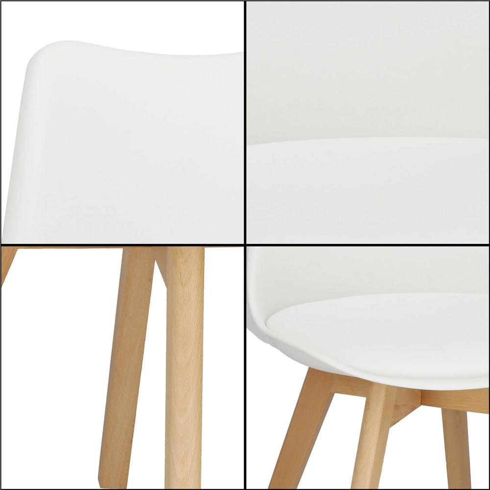 Parametri: Material: PP / lemn / piele ecologica Culoare: alb/maro Capacitate maxima de incarcare: 125 kg Informatii suplimentare: tapitata, perna moale pe scaun Toate elementele de asamblare si uneltele incluse Dimensiuni: Inaltime totala: aproximativ 82 cm Inaltimea spatarului: aproximativ 38 cm Latimea spatarului in punctul cel mai lat: 46 cm Latimea spatarului in punctul cel mai ingust: 31 cm Latime scaun: 44,5 cm Adancimea scaunului: 41 cm Inaltime de la sol pana la sezut: 46,5 cm Distanta dintre picioare in latime: 36 cm Distanta dintre picioare si adancime: 36 cm Diametru picior: 36,5 mm Grosimea pernei tapitate: 1,5 cm Grosimea scaunului: 2,5 cm Scaunul este alegerea perfecta pentru orice camera, living sau bucatarie! Culorile discrete si elegante ale scaunului combinate cu picioarele din lemn creeaza un intreg coerent. Datorita universalitatii sale, scaunul se combina perfect cu restul accesoriilor. Design scandinav modern Perna moale, tapitata pe scaun Culori discrete combinate cu lemn atemporal Forma ergonomica _ Calitate inalta a manoperei Detalii extrem de rafinate Usor de curatat Merge perfect cu restul accesoriilor Utilizare universala : dormitor, bucatarie, living, sufragerie Scaunele scandinave nu sunt doar elegante in design, ci au si o abordare practica a confortului . Echipate cu o perna moale pentru scaun , ofera nu numai estetica, ci si un confort exceptional de utilizare. Aceasta trasatura subtila face din scaunele scandinave un loc preferat pentru a se aseza, combinand eleganta cu placerea utilizarii. Scaunul este realizat din cele mai potrivite materiale care sunt perfecte pentru living sau bucatarie. In primul rand, scaunul este foarte usor de curatat , puteti scapa cu usurinta de murdaria mai dificila. Forma ergonomica este responsabila pentru confortul in timpul utilizarii, de exemplu la un birou cand lucrezi de la distanta. Scaunele scandinave sunt chintesenta simplitatii si elegantei care se potrivesc perfect in orice interior . Lemnul lor deschis si designul ergonomic le fac sa se potriveasca perfect pentru bucatarie, sufragerie, dormitor , bar sau restaurant. Nu este doar mobilier, este o alegere care combina stilul cu functionalitatea , dand fiecarui spatiu un caracter unic . Exista capete din plastic pe partea inferioara a picioarelor , care protejeaza lemnul de contactul cu podeaua. Nu trebuie sa va faceti griji ca va umeziti picioarele, ceea ce le poate dauna.