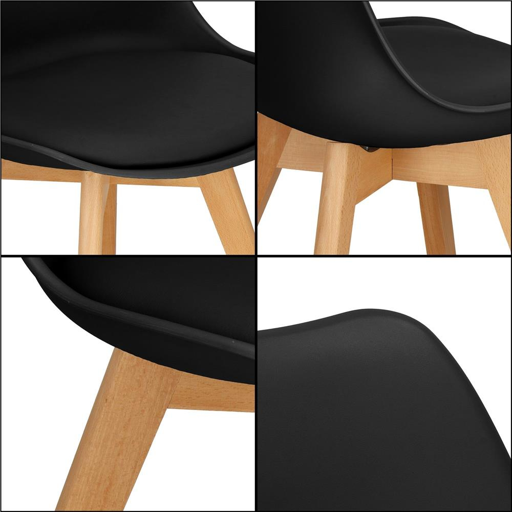 Material: PP/lemn Culoare: negru/maro Capacitate maxima de incarcare: 125 kg Informatii suplimentare: tapitata, perna moale pe scaun Toate elementele de asamblare si uneltele incluse Inaltime totala: aproximativ 82 cm Inaltimea spatarului: aproximativ 42 cm Latimea spatarului in punctul cel mai lat: 44,5 cm Latimea spatarului in punctul cel mai ingust: 31 cm Latime scaun: 43,5 cm Adancimea scaunului: 41 cm Inaltime de la sol pana la sezut: 46,5 cm Distanta dintre picioare in latime: 34 cm Distanta dintre picioare si adancime: 34 cm Diametru picior: 36,5 mm Grosimea pernei tapitate: 1,5 cm Grosimea scaunului: 2,5 cm Scaunul este alegerea perfecta pentru orice camera, living sau bucatarie! Culorile discrete si elegante ale scaunului combinate cu picioarele din lemn creeaza un intreg coerent. Datorita universalitatii sale, scaunul se combina perfect cu restul accesoriilor. Design scandinav modern Perna moale, tapitata pe scaun Culori discrete combinate cu lemn atemporal Forma ergonomica _ Calitate inalta a manoperei Detalii extrem de rafinate Usor de curatat Merge perfect cu restul accesoriilor Utilizare universala : dormitor, bucatarie, living, sufragerie Scaunele scandinave nu sunt doar elegante in design, ci au si o abordare practica a confortului . Echipate cu o perna moale pentru scaun , ofera nu numai estetica, ci si un confort exceptional de utilizare. Aceasta trasatura subtila face din scaunele scandinave un loc preferat pentru a se aseza, combinand eleganta cu placerea utilizarii. Scaunul este realizat din cele mai potrivite materiale care sunt perfecte pentru living sau bucatarie. In primul rand, scaunul este foarte usor de curatat , puteti scapa cu usurinta de murdaria mai dificila. Forma ergonomica este responsabila pentru confortul in timpul utilizarii, de exemplu la un birou cand lucrezi de la distanta. Scaunele scandinave sunt chintesenta simplitatii si elegantei care se potrivesc perfect in orice interior . Lemnul lor deschis si designul ergonomic le fac sa se potriveasca perfect pentru bucatarie, sufragerie, sufragerie, dormitor , bar sau restaurant. Nu este doar mobilier, este o alegere care combina stilul cu functionalitatea , dand fiecarui spatiu un caracter unic . Exista capete din plastic pe partea inferioara a picioarelor , care protejeaza lemnul de contactul cu podeaua. Nu trebuie sa va faceti griji ca va umeziti picioarele, ceea ce le poate dauna.