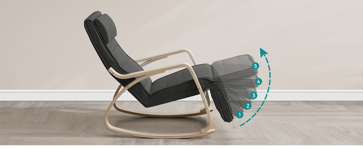 Detalii produs: Culoare: Gri inchis Material: lemn de mesteacan, cadru metalic in interior, umplutura din spuma, husa realizata dintr-un amestec de bumbac si poliester Dimensiuni: 121,5 x 67 x 84 cm (D x W x H) Capacitate maxima de incarcare statica: 150 kg Despre acest articol Fabricat din lemn de mesteacan de inalta calitate si un cadru metalic in interior, acest scaun balansoar este stabil si sigur si poate sustine pana la 150 kg.Suportul pentru picioare al fotoliului culisant este reglabil in 5 pozitii. Fie ca doriti sa va relaxati sau sa cititi o carte, aici puteti gasi o pozitie ideala. Captusite cu spuma foarte elastica, perna scaunului si tetiera sunt moi si confortabile. Puteti trage un pui de somn confortabil pe acest fotoliu. Husa pernei scaunului si a tetierei este usor detasabila pentru curatare. In plus, tetiera poate fi usor indepartata sau atasata datorita inchizatoarelor practice Velcro.Puteti utiliza fotoliul balansoar in dormitor, in camera de zi sau in birou. Picioarele sale sunt, de asemenea, echipate cu pasla antiderapanta, care va protejeaza podeaua.