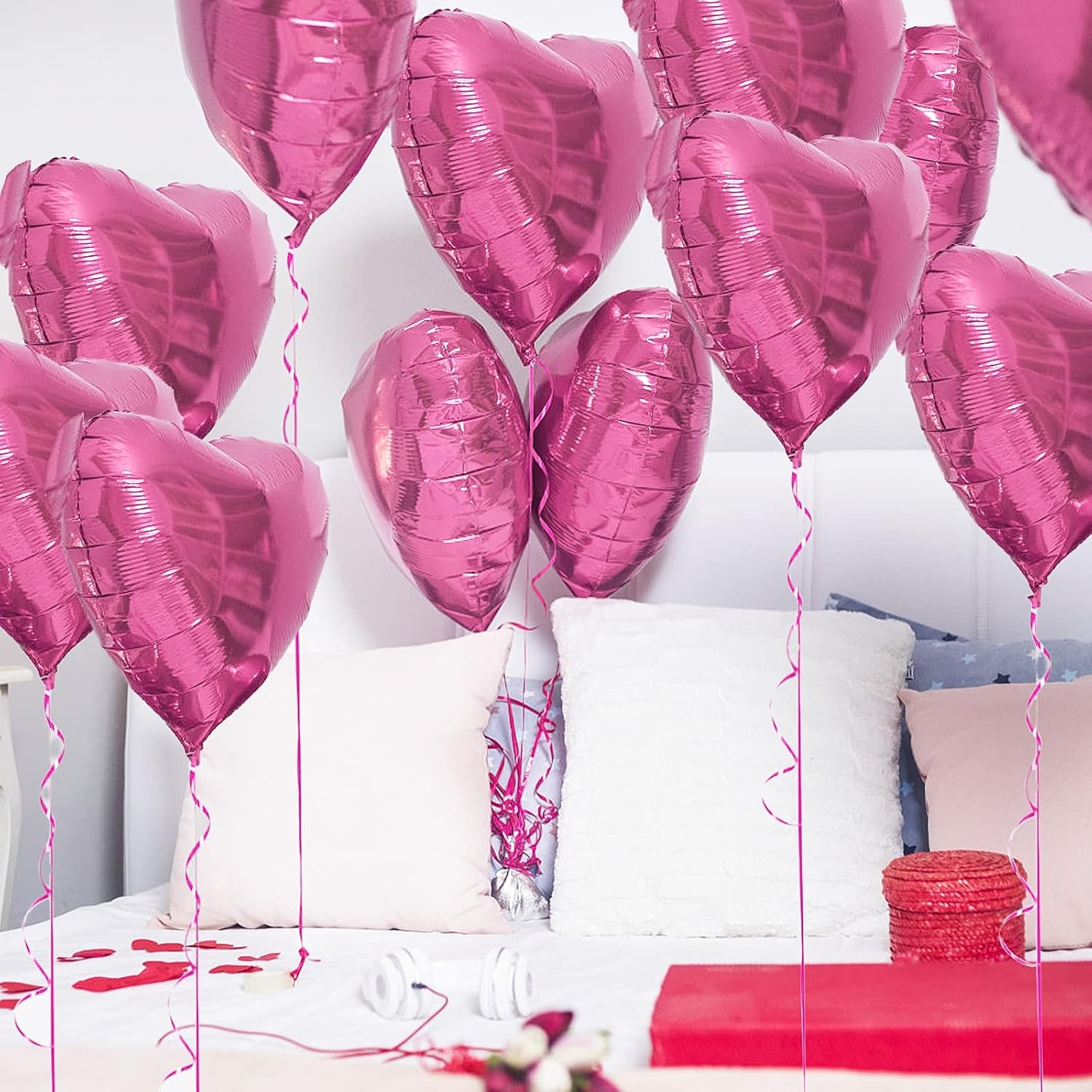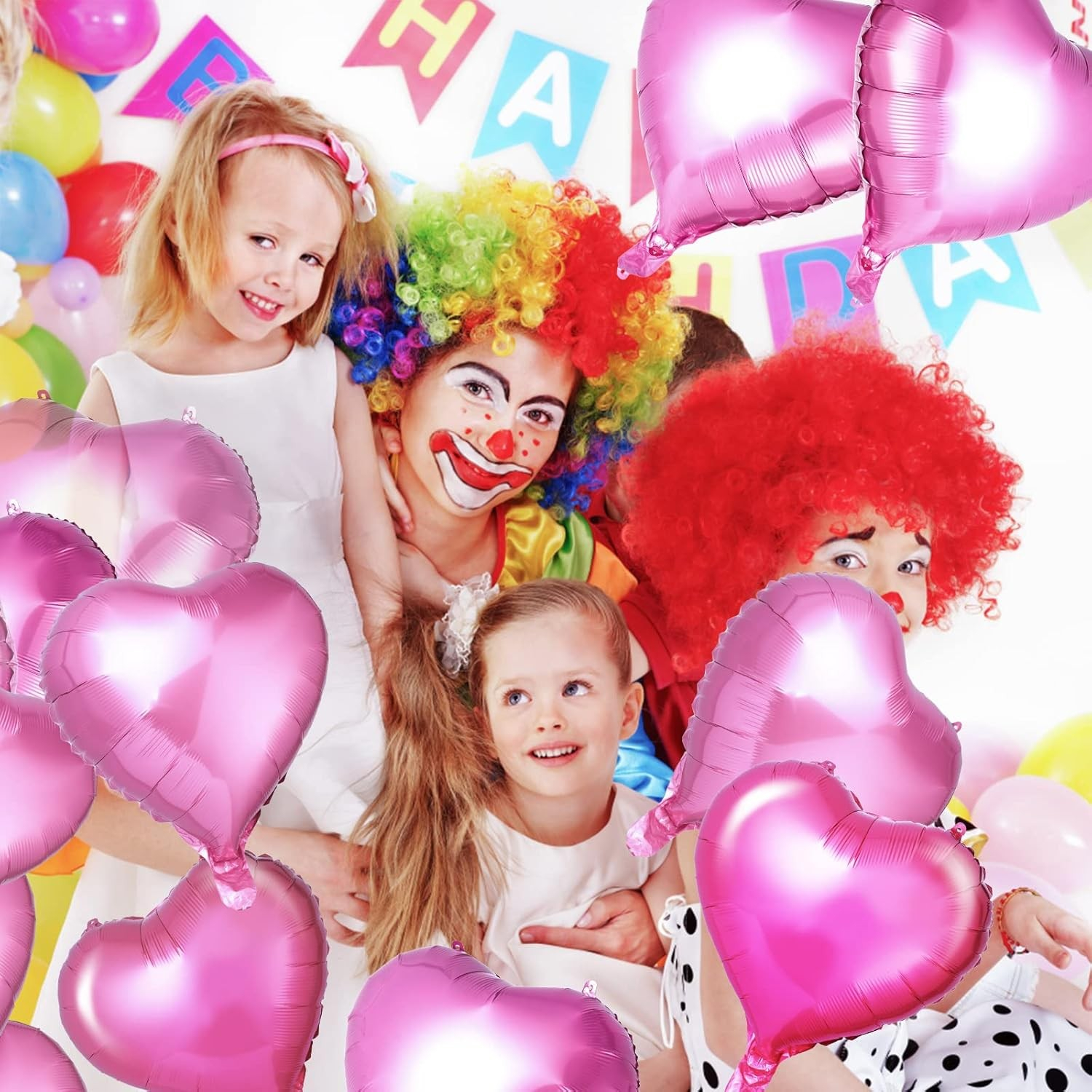 Set 3 Baloane din Folie Metalizata, , Figurina Inima, Tema Ziua Indragostitilor, 45 cm, Ambalaj Individual, Pai Inclus, Umflare cu Aer sau Heliu, Roz