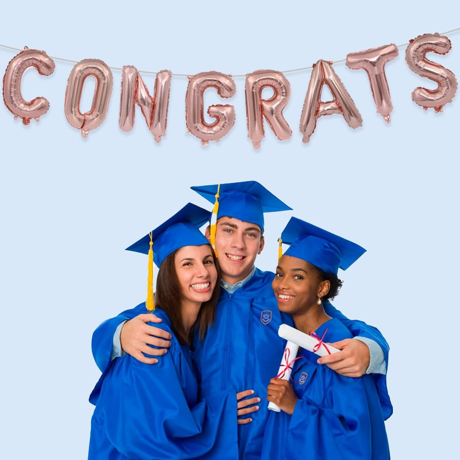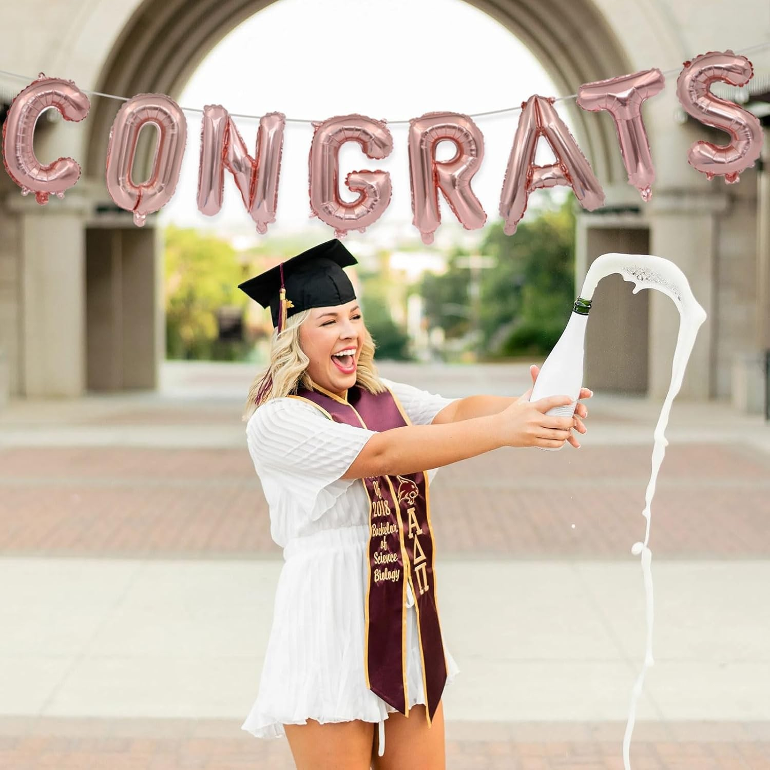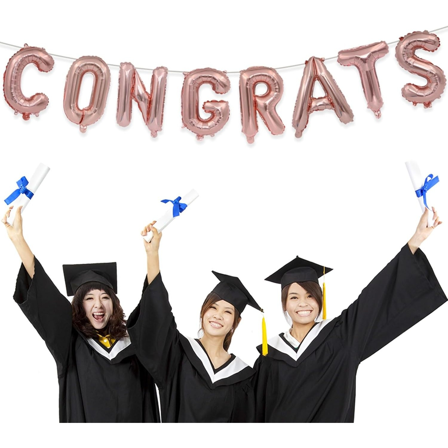 Set 8 Baloane din Folie Metalizata, , Model Scris Congrats, Litere de 40 cm, Tema Absolvire, Baloane Party, Ambalaj Individual, Pai Inclus, Umflare cu Aer sau Heliu, Roz