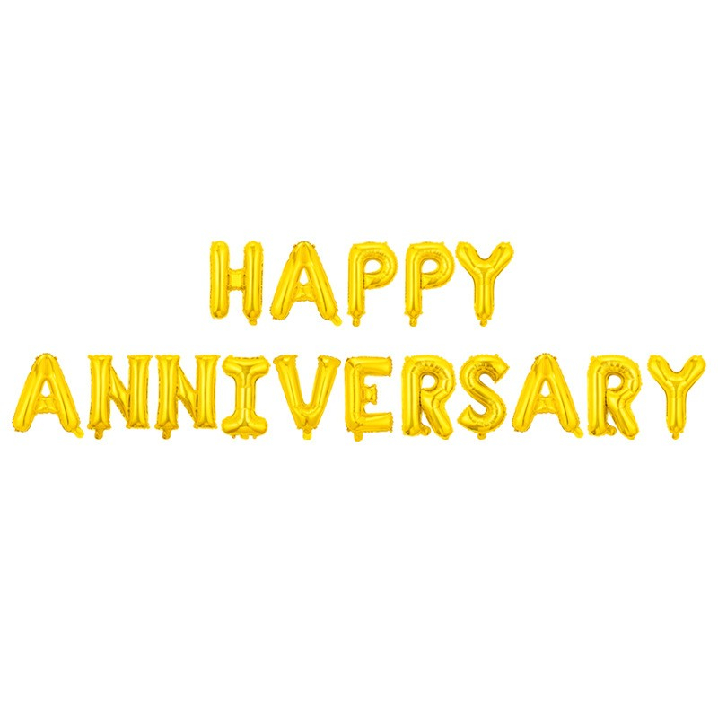 Set Baloane din Folie Metalizata, , Model Happy Anniversary, Litere de 40 cm, Baloane Party, Ambalaj Individual, Pai Inclus, Umflare cu Aer sau Heliu, Auriu