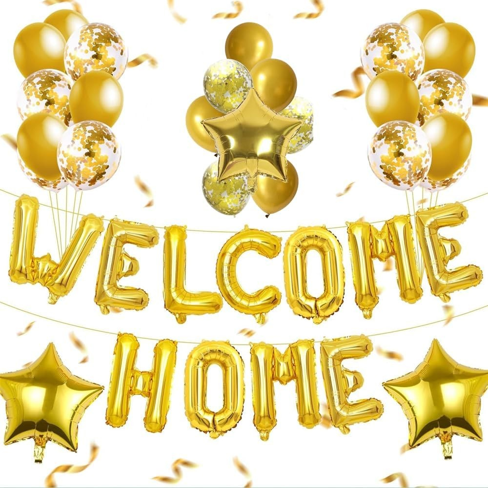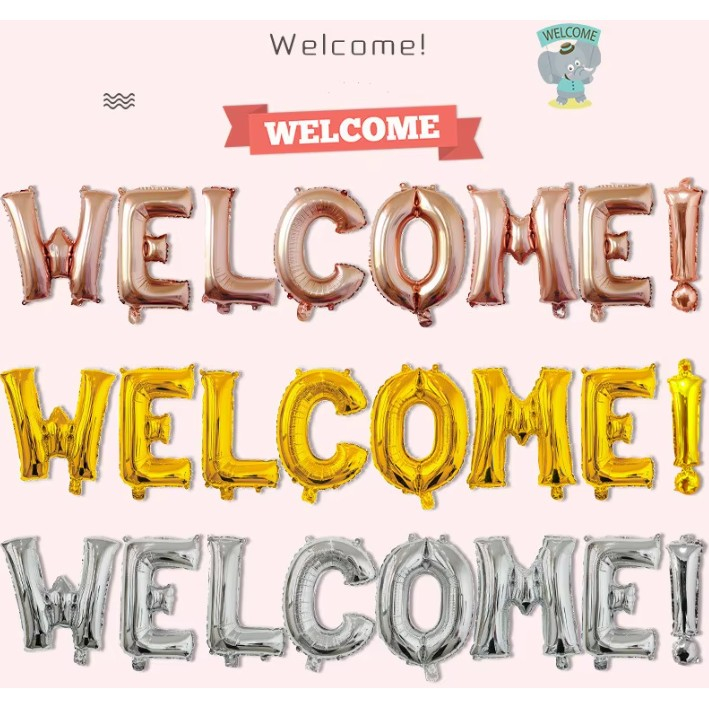 Set Baloane din Folie Metalizata, , Model WELCOME!, Litere de 40 cm, Baloane Party, Ambalaj Individual, Pai Inclus, Umflare cu Aer sau Heliu, Auriu