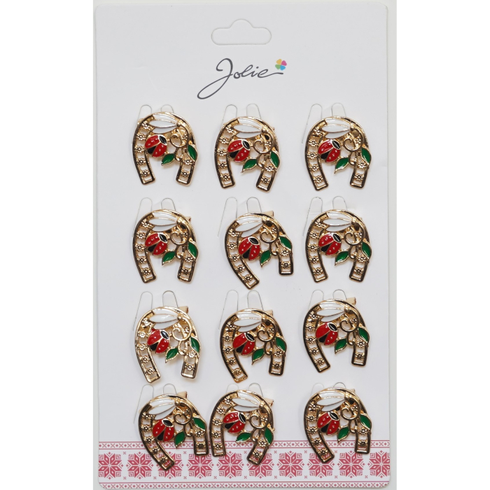 Set 12 Brose Martisor Primavara Potcoava cu Ghiocel si Buburuza