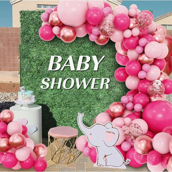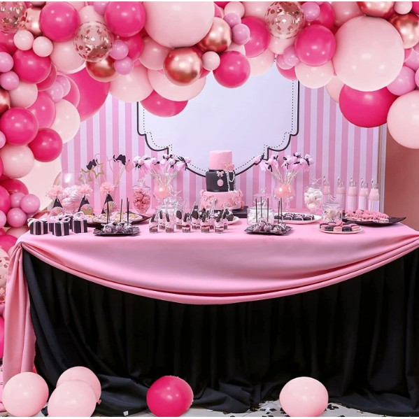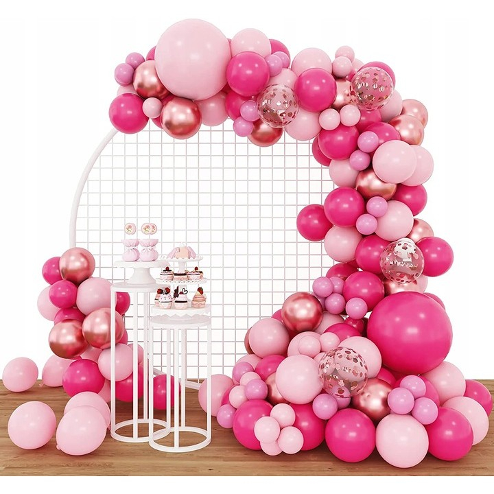 Set 126 Baloane din Latex, , Model Petrecere pentru Arcada, Baloane Party, 12 cm, 25 cm, 30 cm, 45 cm, Roz, Roz Pal, Gold