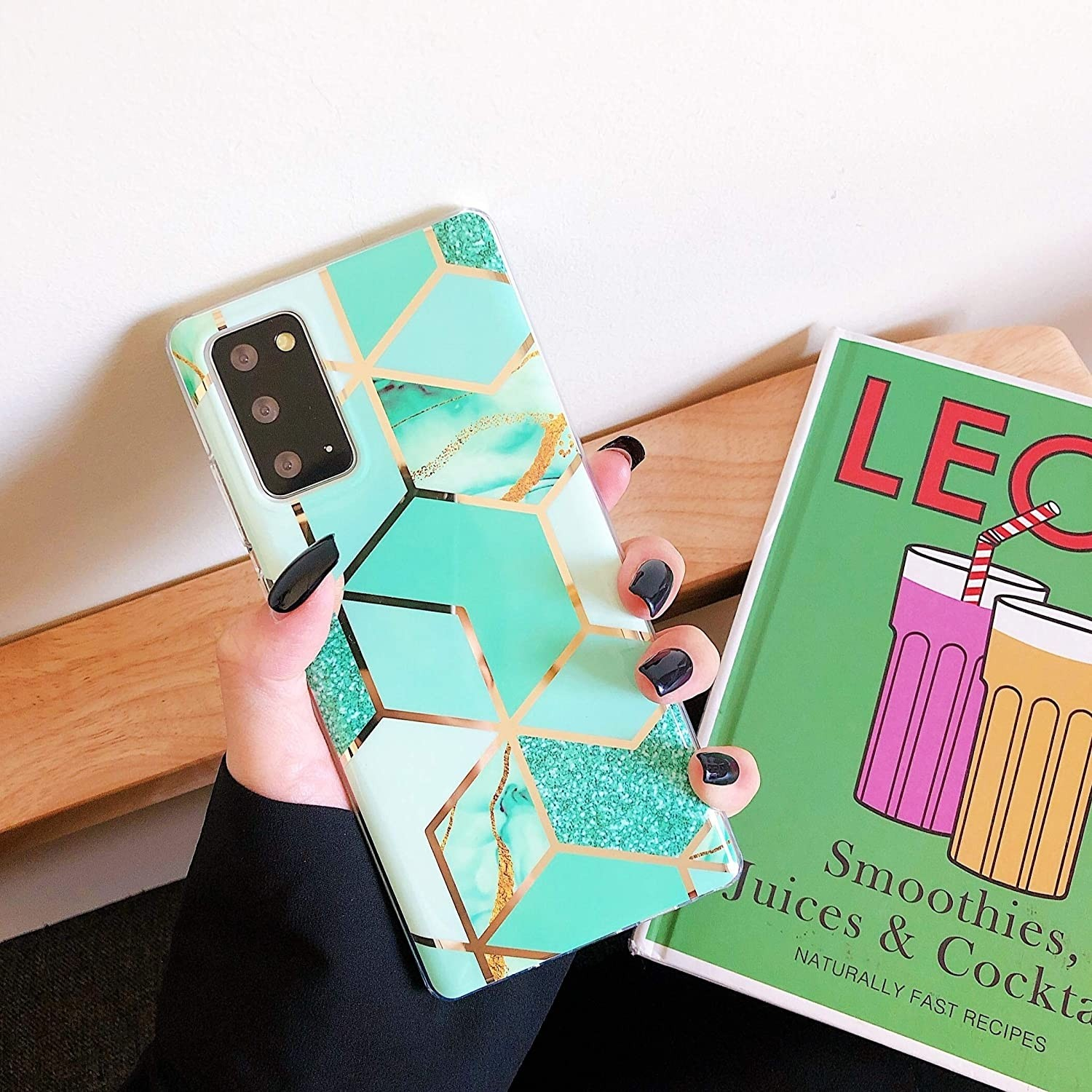 Husa protectie compatibila cu Samsung Galaxy S21 Ultra Soft IMD TPU Marble Geometric Verde