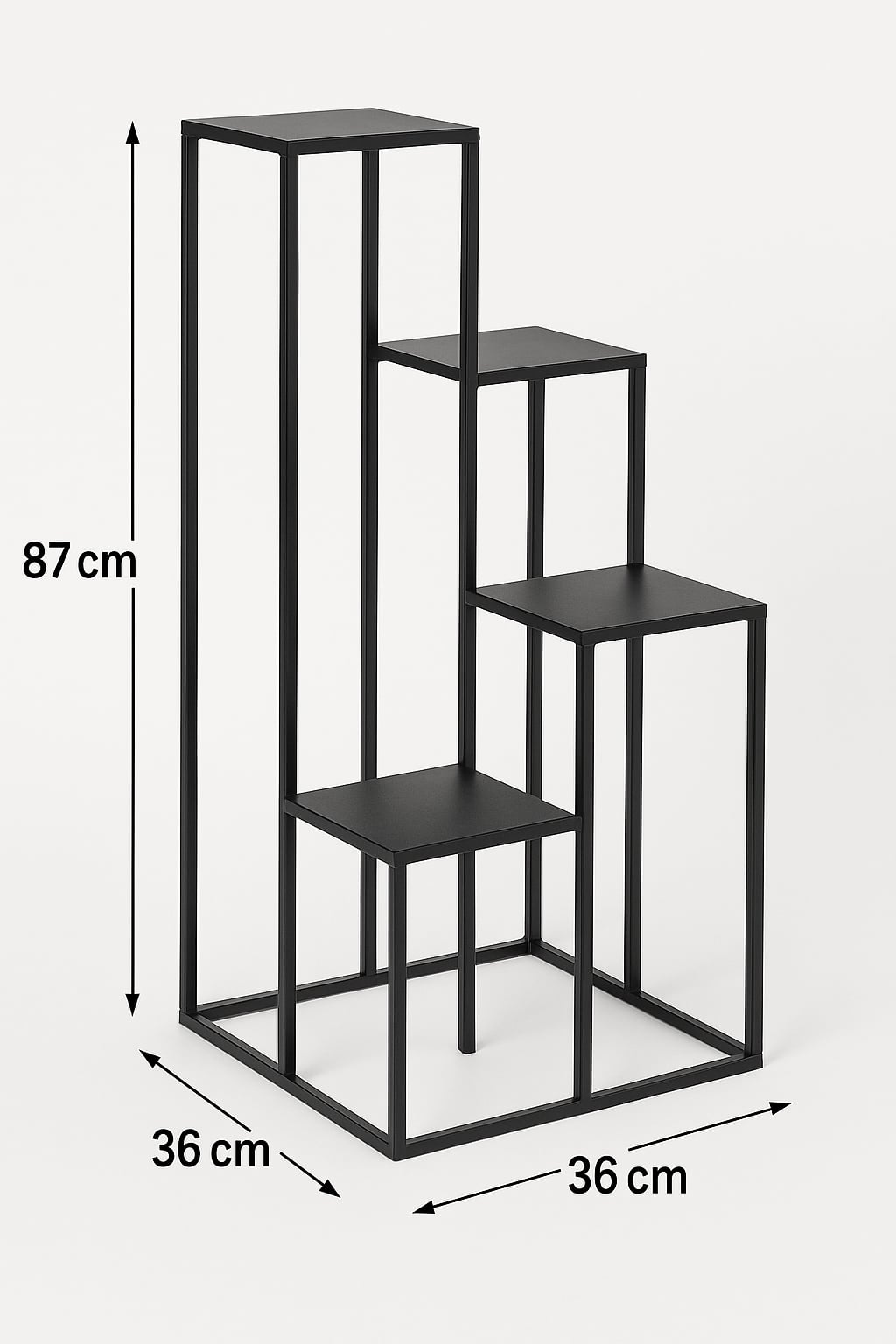 Suport plante Atmosphera cu 4 niveluri, structura metalica, 36x36x87 cm, negru