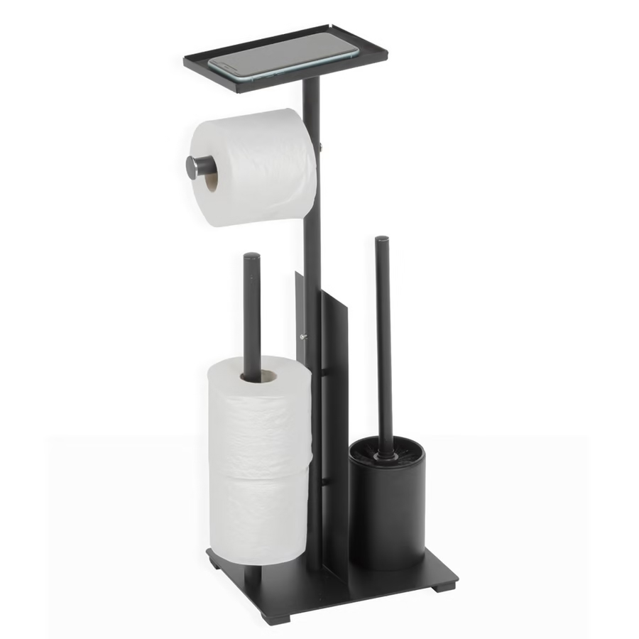 Suport hartie igienica 5Five Glass cu rezerva si perie, otel, 28x18x62 cm, negru