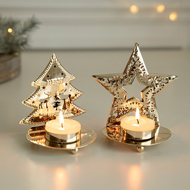 Adauga un plus de eleganta decorului tau de sarbatori cu acest suport decorativ pentru lumanare in forma de brad auriu. Realizat din art metal de inalta calitate, este rezistent si durabil, oferind un aspect festiv si rafinat. Designul sau detaliat, cu decupaje in forma de stele si reni, creeaza un joc spectaculos de lumini atunci cand este asezata o lumanare in suport.