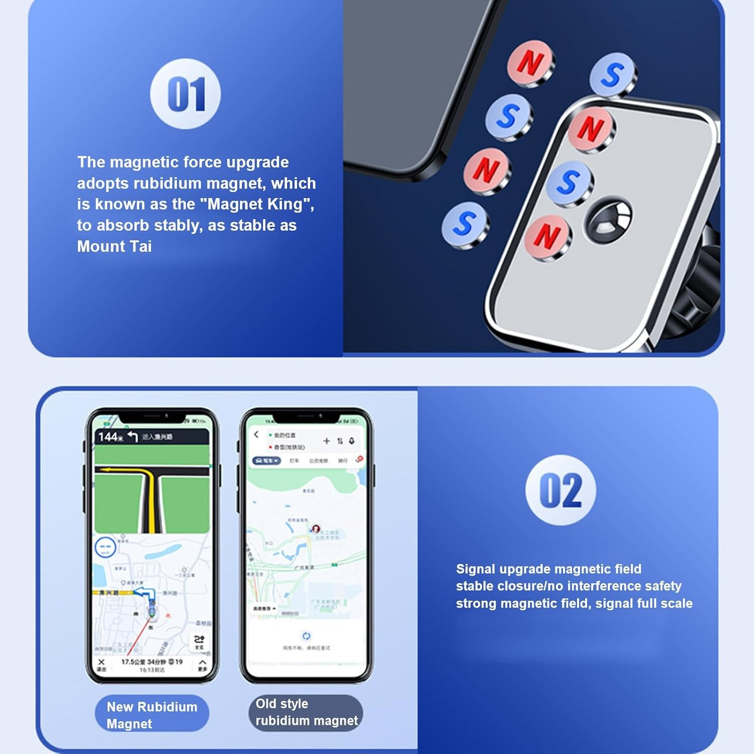 Prindere Magnetica Robustă: Înarmat cu tehnologii avansate de magnetizare, suportul asigură o fixare solidă a telefonului tău, indiferent de suspensia mașinii sau de condițiile rutiere. Acesta este compatibil cu telefoanele dotate cu tehnologia MagSafe, dar poate susține și dispozitive standard prin intermediul unei plăcuțe metalice incluse.
