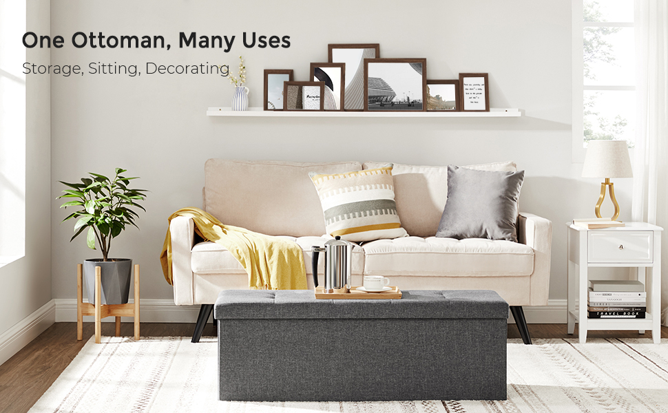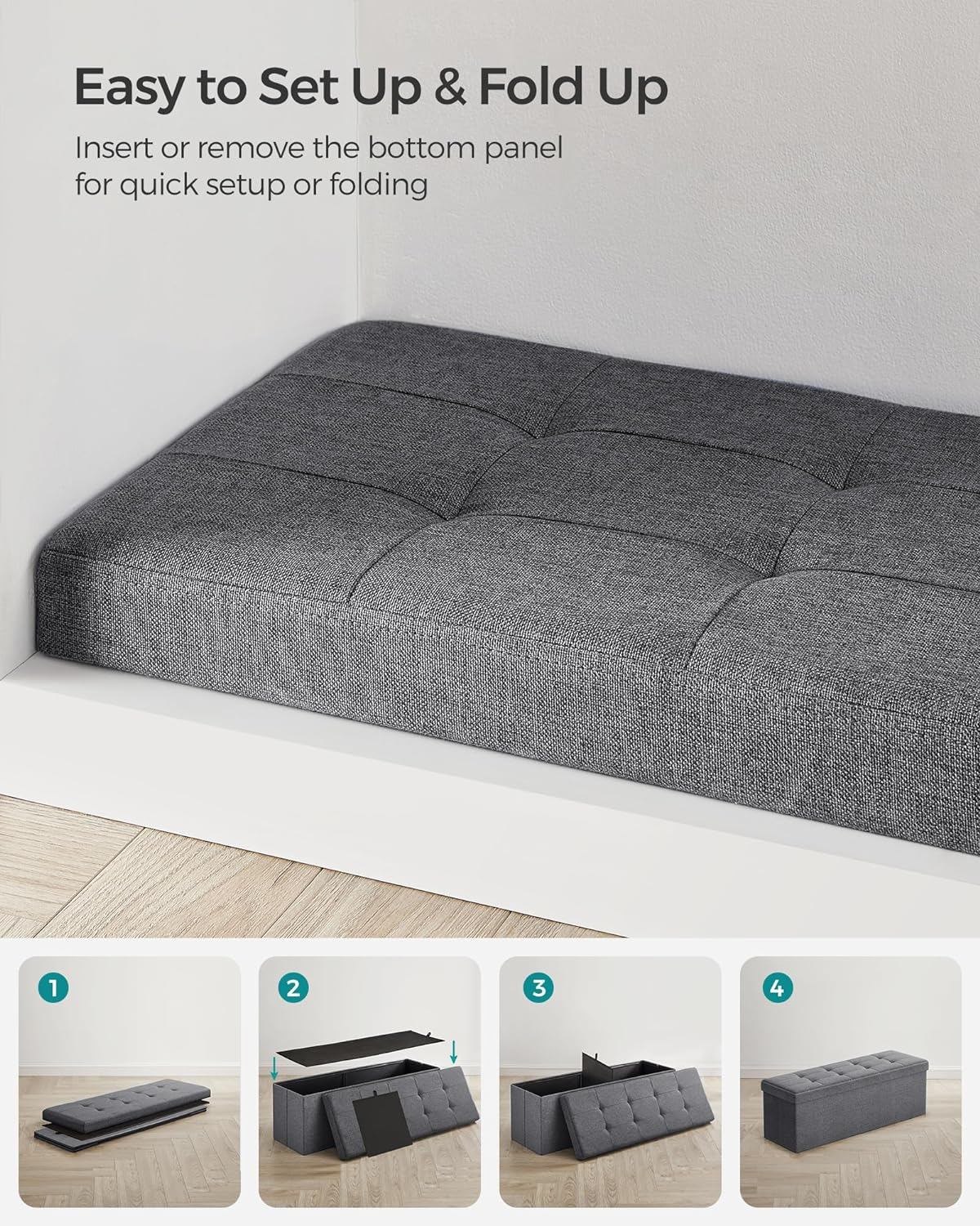 SONGMICS Taburet pliabil cu sezut moale, spatiu de depozitare 131litri, maxim 300kg, 110x38x38cm, gri inchis