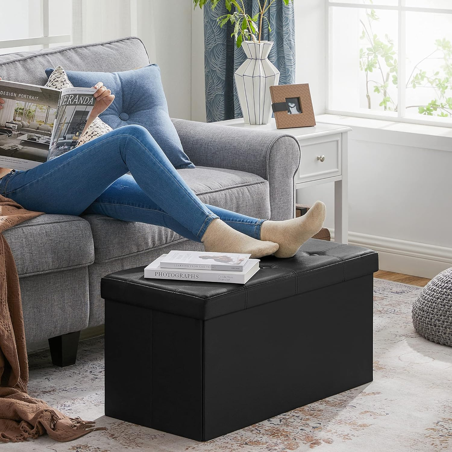 SONGMICS Taburet pliabil cu sezut moale, spatiu de depozitare 80litri, maxim 300kg, 76x38x38cm, negru