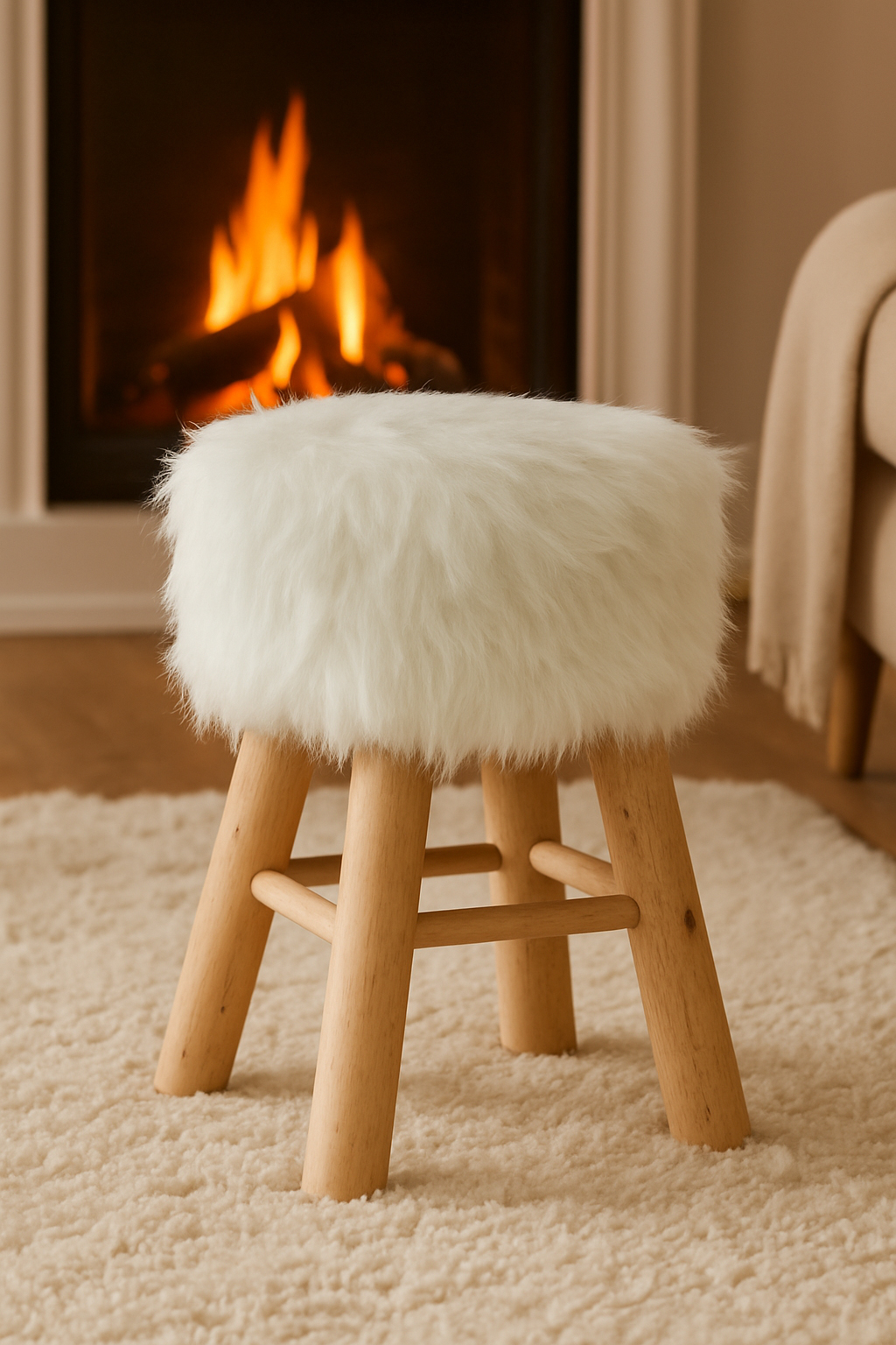 Taburet Atmosphera Oslo cu efect de blana, 42 cm, alb