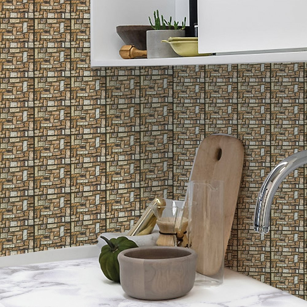 Set 10 Plăci Tapet 3D, , 30 x 30 cm, din PVC, Tip Piatră, Suprafață acoperită 0.9 mp, Autoadeziv, Maro