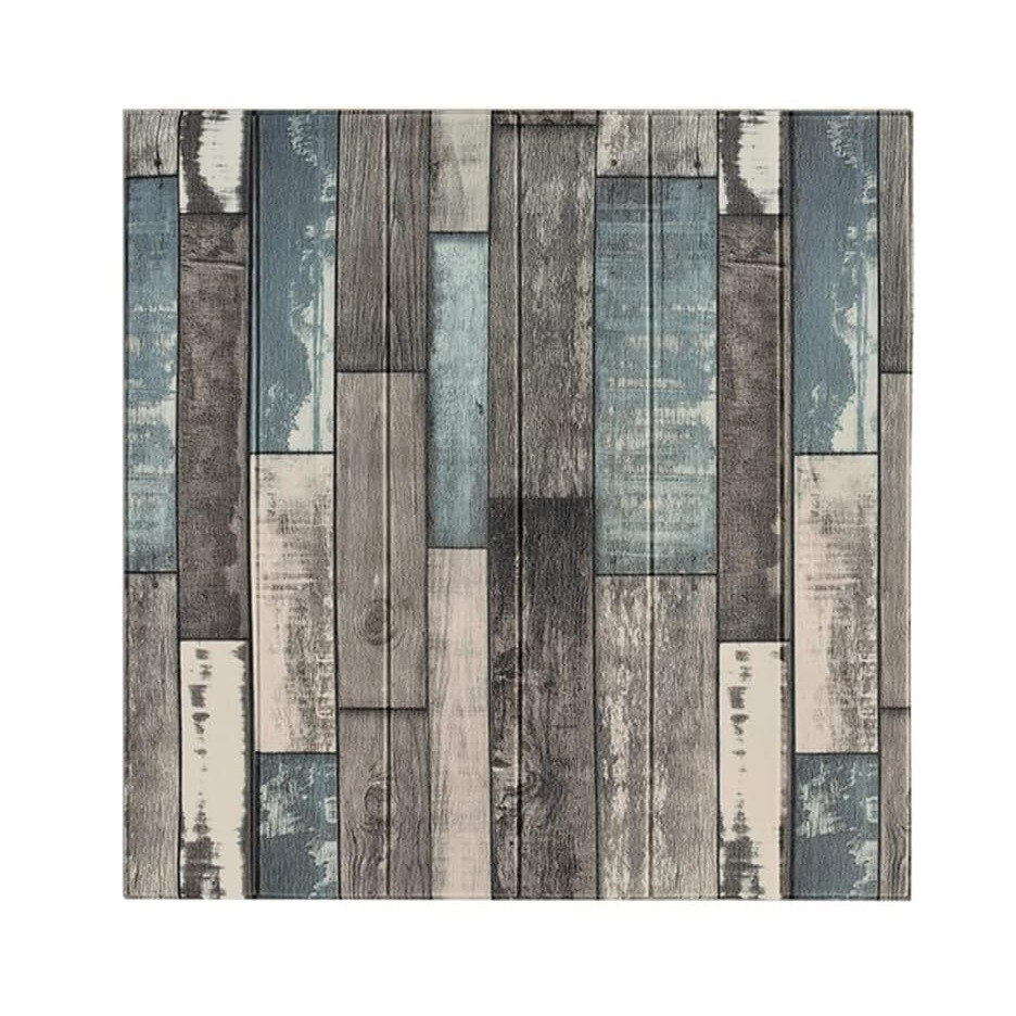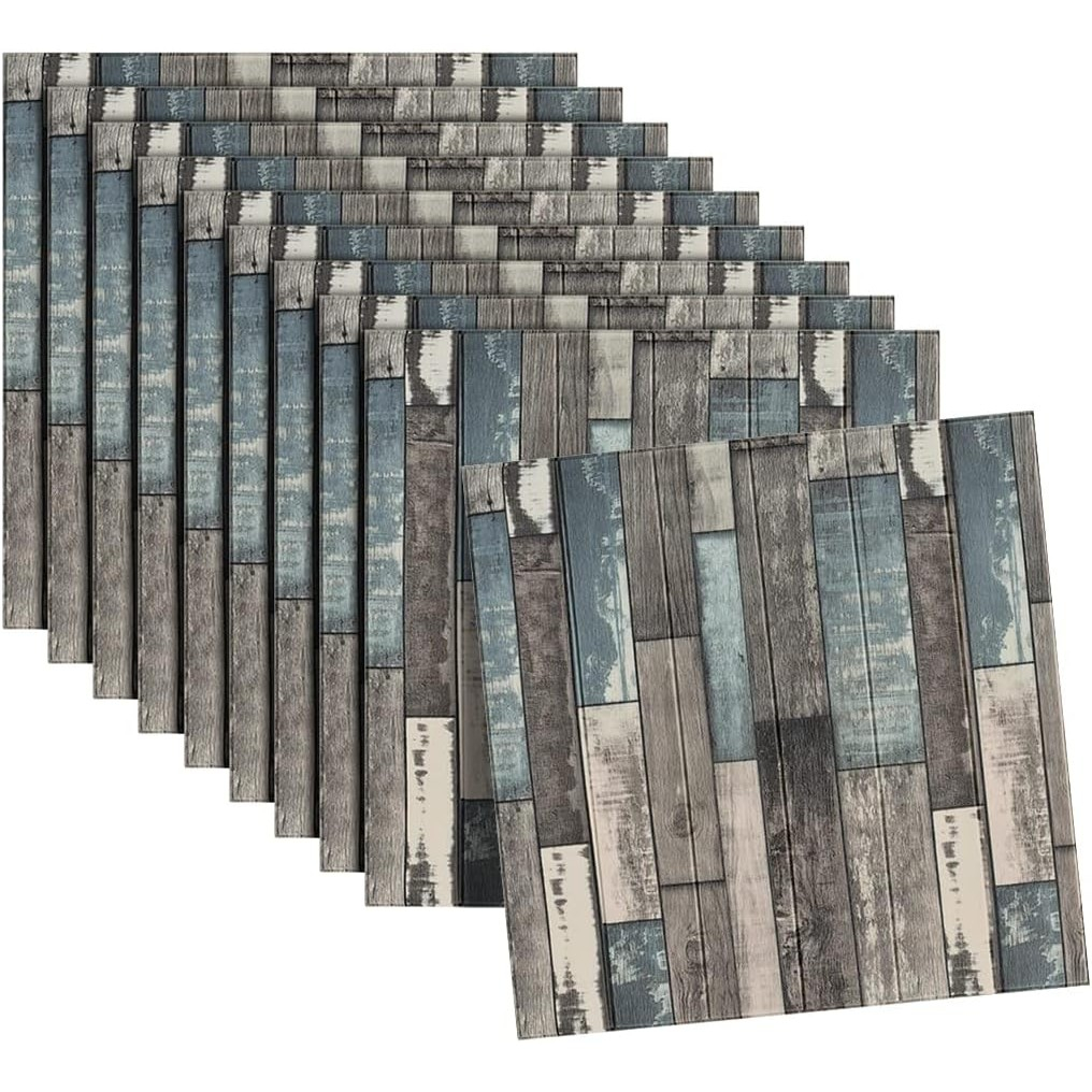 Set 10 Placi Tapet 3D, , 70 x 70 cm, Grosime 3 mm, din Rasina, Tip Placi de Lemn, Suprafata Acoperita 4.9 mp, Gri/Albastru