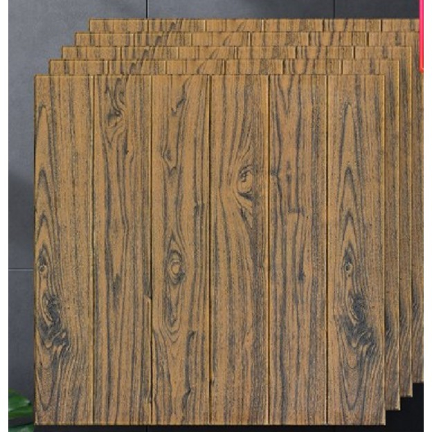 Set 10 Placi Tapet 3D, , 70 x 70 cm, Grosime 3 mm, din Rasina, Tip Placi de Lemn, Suprafata Acoperita 4.9 mp, Maro Inchis