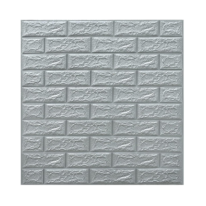 Set 10 Placi Tapet 3D, , 70 x 77 cm, Grosime 3 mm, din Polietilena, Model Caramida, Suprafata acoperita 5.3 mp, Argintiu