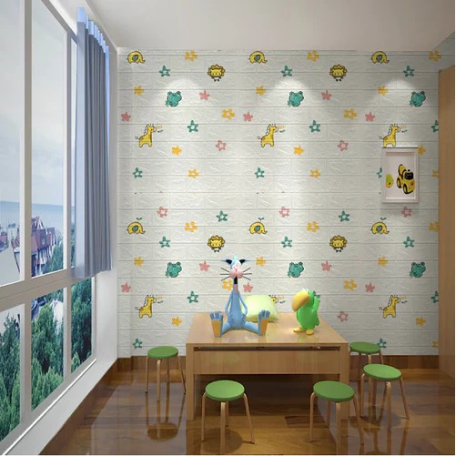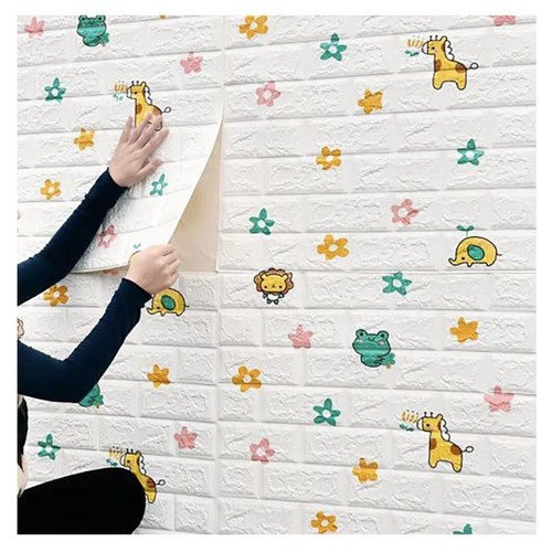 Descriere Produs: Set 10 Placi Tapet 3D - Tip Caramida, Model Animalute si Floricele,
