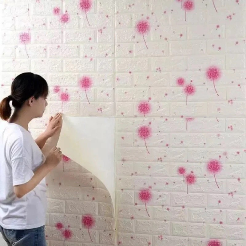 Descriere Produs: Set 10 Placi Tapet 3D - Tip Caramida, Model Papadie Roz,