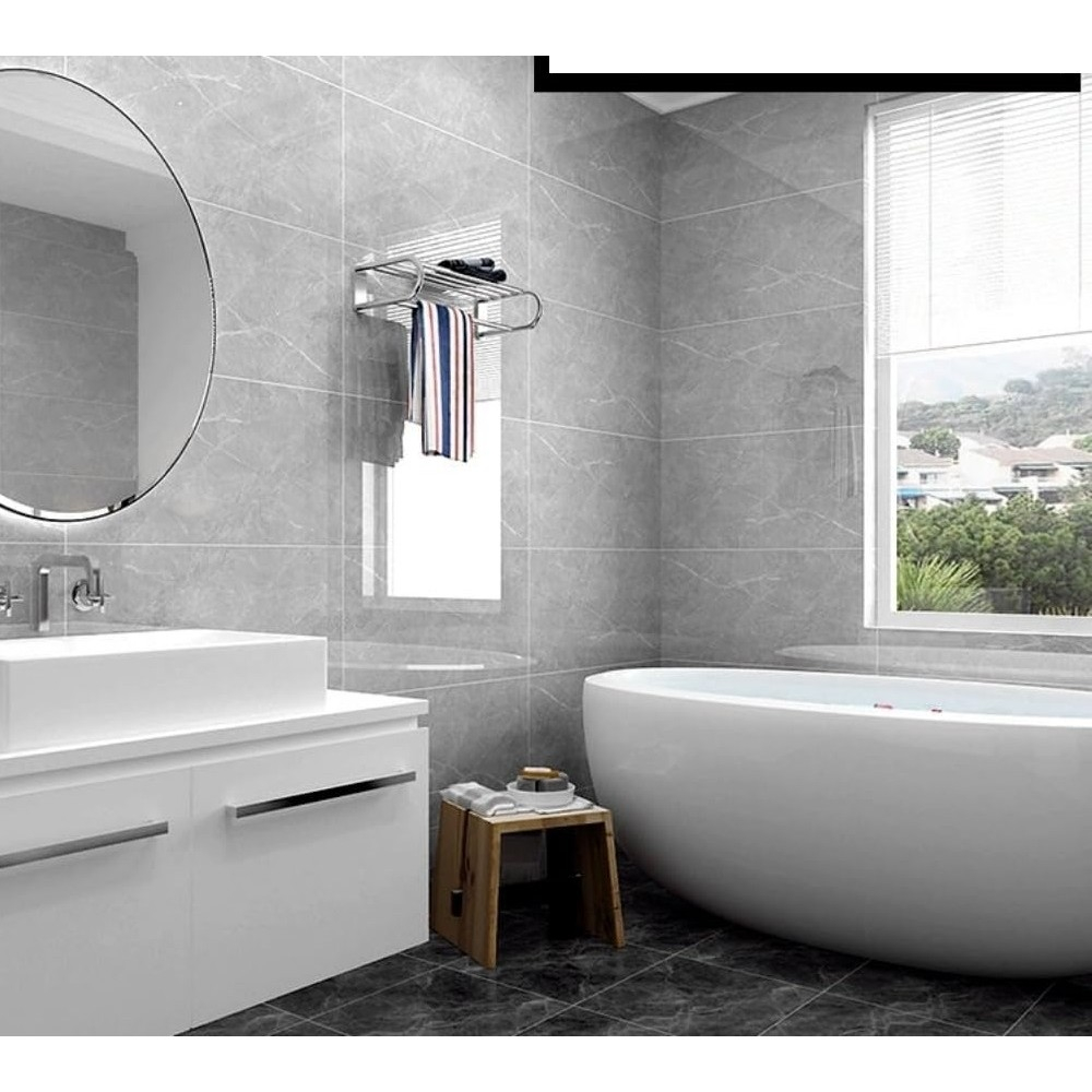 Set 10 Plăci Tapet, , 60 x 30 cm, Grosime 1.5 mm, din PVC, Model Imitație de Marmură, Suprafață acoperită 1.8 mp, Gri Cenusiu Deschis