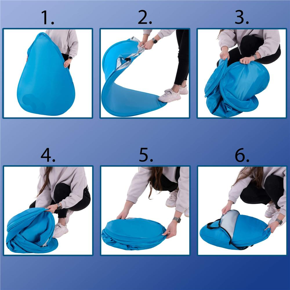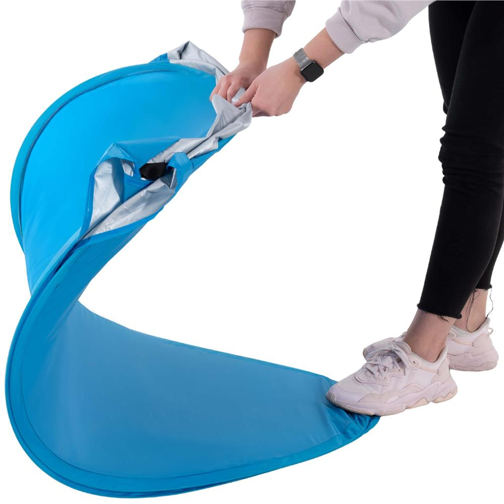 Cort plaja autoexpansibil POP-UP cu plasa ventilatie si protectie UV, 160x140x115 cm, albastru