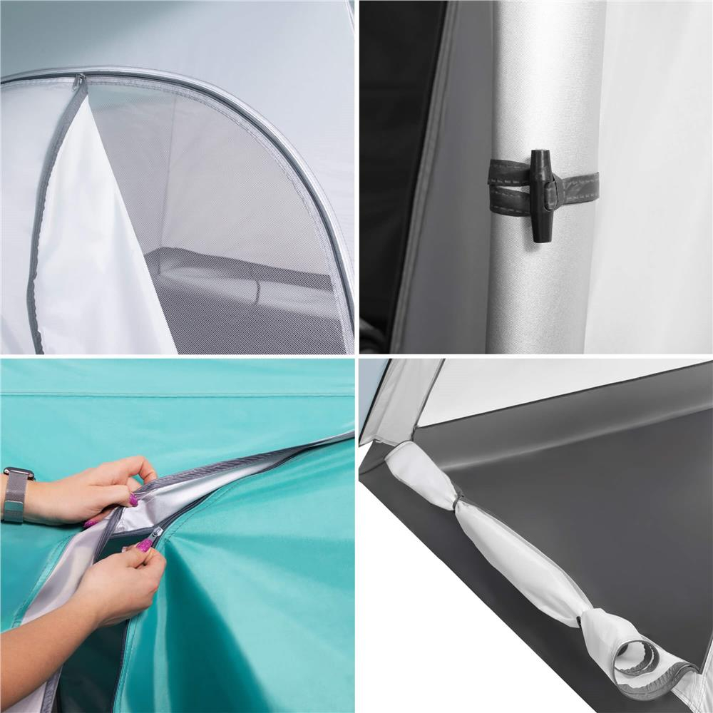 Cort plaja sau camping, impemeabil, cu terasa, 4 locuri, 175x310x130cm, gri albastru