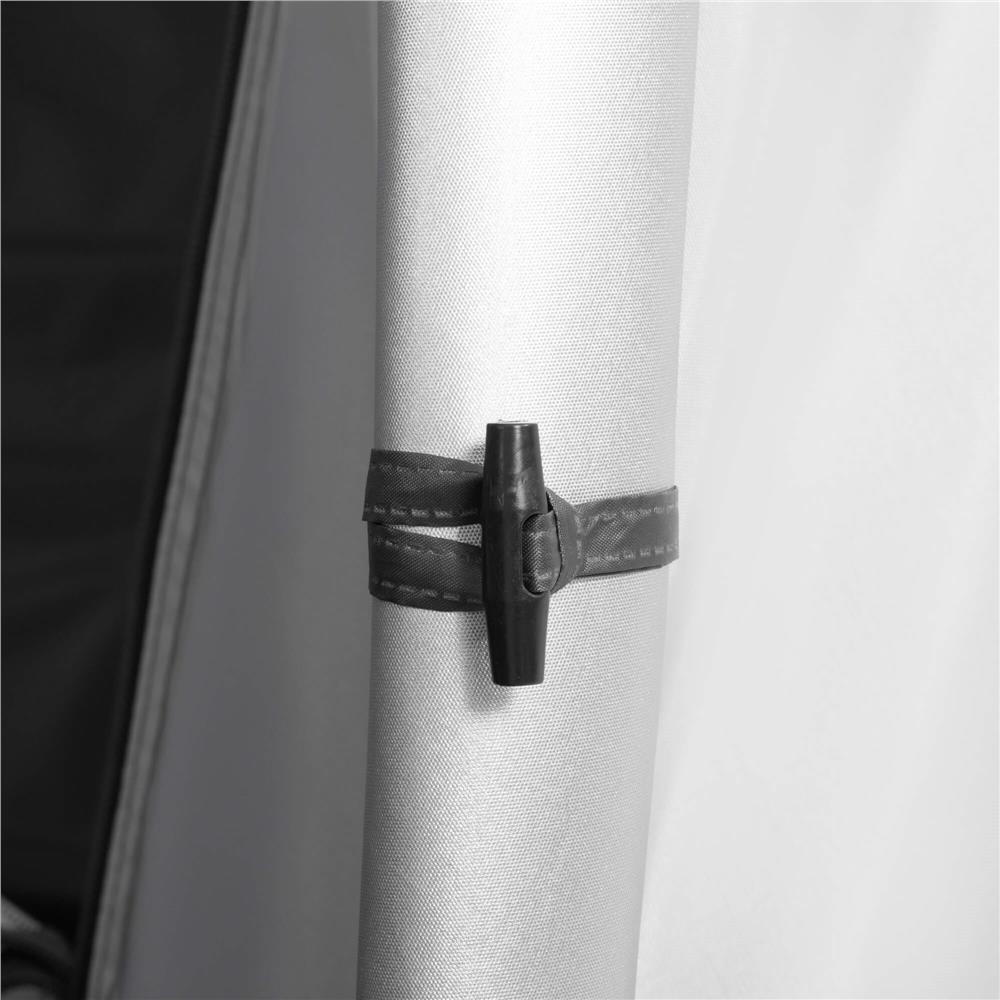 Un cort mare pentru 4 persoane cu vestibul este esenta confortului si a sigurantei in timpul utilizarii! Fabricat din materiale de cea mai buna calitate, acesta garanteaza protectie impotriva ploii, vantului si a altor conditii meteorologice nefavorabile, oferind in acelasi timp o ventilatie excelenta si spatiu interior. Cortul va gazdui pana la 4 persoane Constructie usoara Asamblare rapida si usoara Spatiu interior amplu pentru o utilizare confortabila Fabricat din materiale solide si rezistente la intemperii Ventilatie excelenta Protectie impotriva insectelor cu plase pentru tantari Fermoare cu doua fete Rezistent la UV Geanta de transport comoda si practica inclusa Cadrul cortului este fabricat din fibra de sticla, care este un material usor, flexibil si puternic, asigurand stabilitatea structurii. Rafalele puternice de vant nu va vor speria - suruburile metalice permit fixarea sigura a cortului la sol. Datorita cusaturilor sigilate, cortul nu permite patrunderea apei atunci cand ploua - asigurati-va doar ca materialul este intins corespunzator.Interiorul cortului gazduieste cu usurinta patru persoane, iar vestibulul mare, care se poate inchide, ofera un spatiu suplimentar protejat de ploaie - puteti introduce acolo pantofii, rucsacurile si restul echipamentului fara sa va faceti griji ca veti fi surprinsi de ploaie in timpul noptii. Plasa de ventilatie si ferestrele cu plase de tantari asigura un flux adecvat de aer proaspat pentru confort maxim si un somn sigur si sanatos.