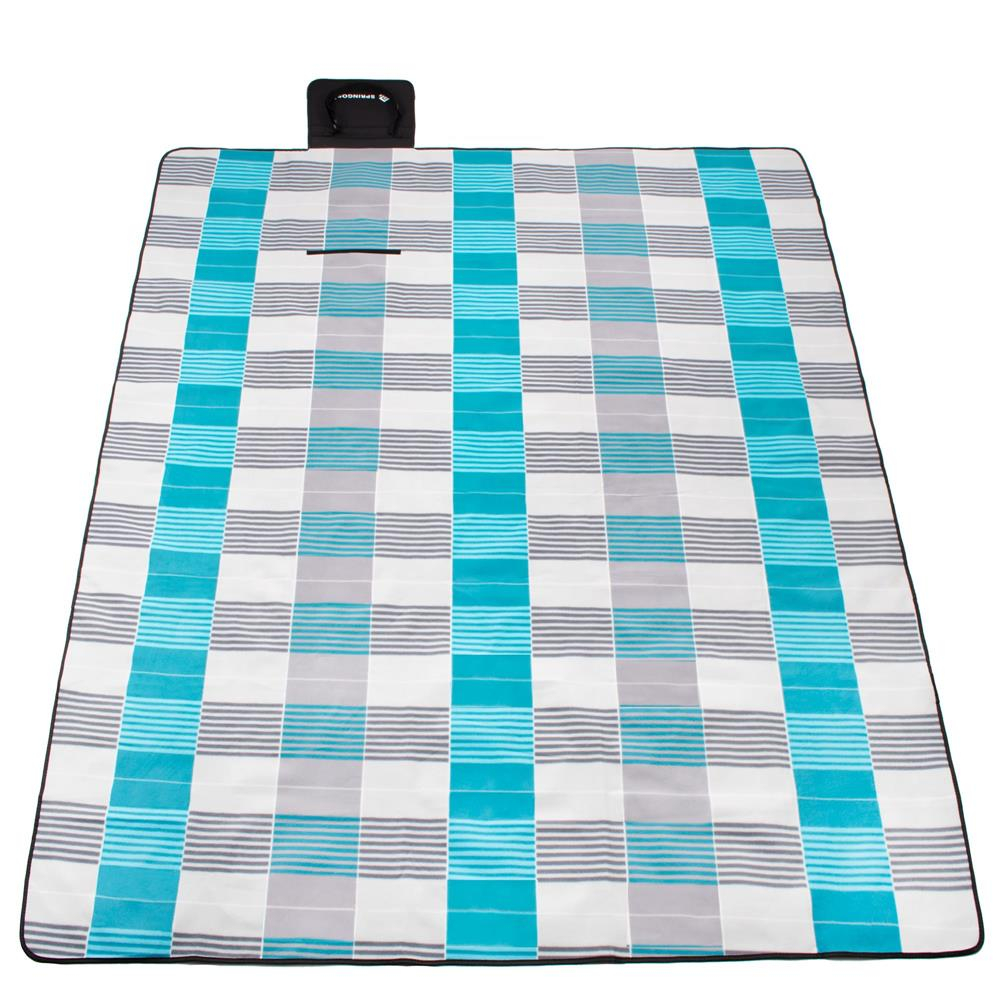 Patura pentru picnic sau plaja, cu folie izolatoare si maner, 150x200cm, albastru gri