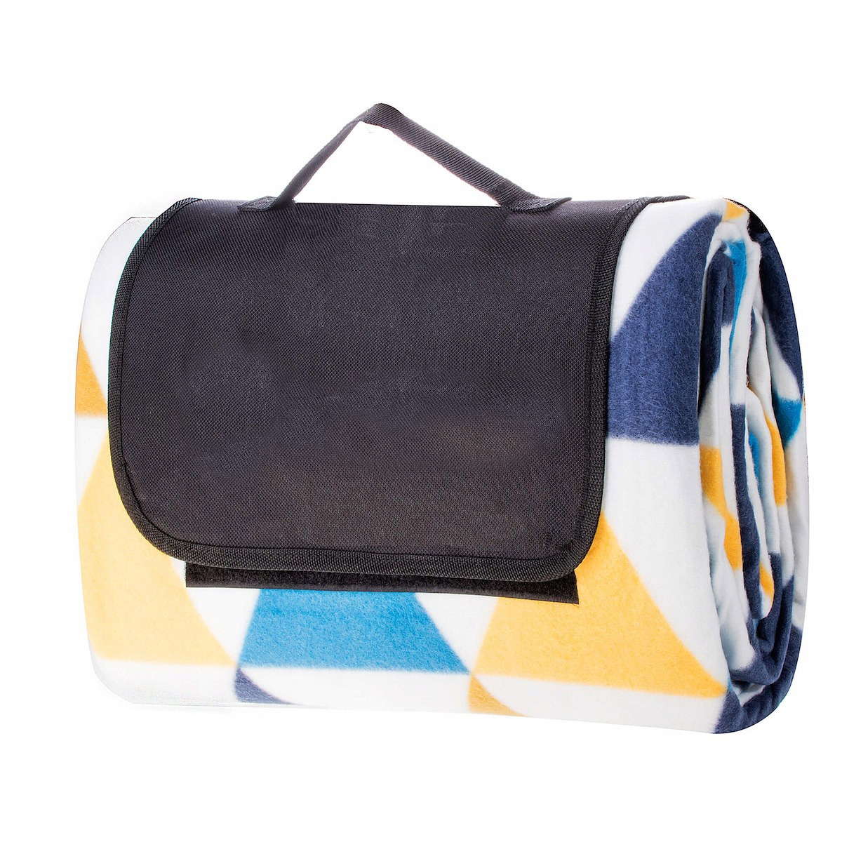 Patura pentru picnic sau plaja, cu folie izolatoare si maner, 200x200cm, albastru galben