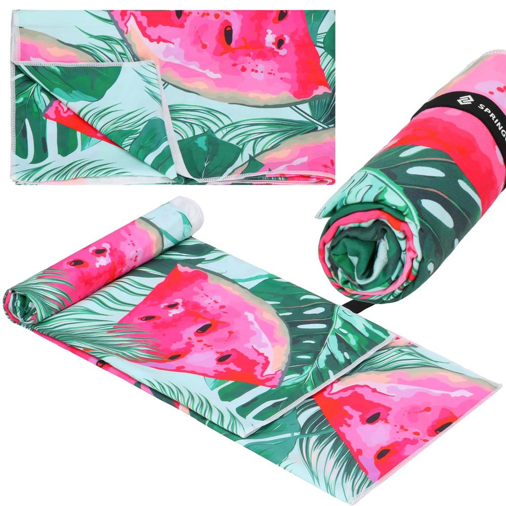 Prosop de plaja cu uscare de rapida, husa de transport, 90x180cm, model pepene verde
