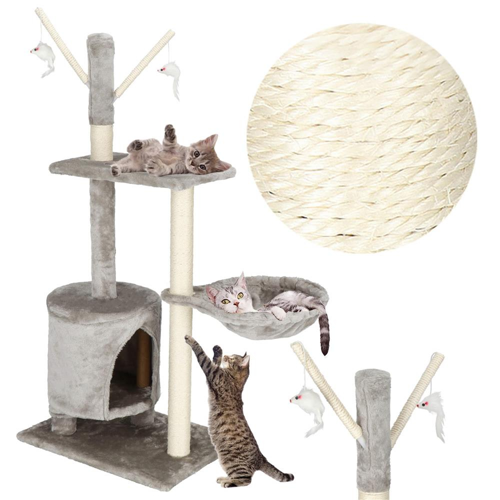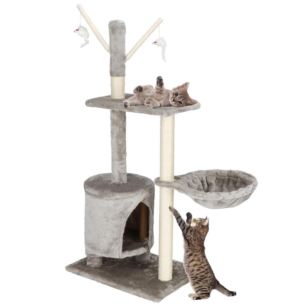 Ansamblu de joaca pentru pisici, cu loc pentru zgariat, ascuns, culcus, soricei, 108cm, gri